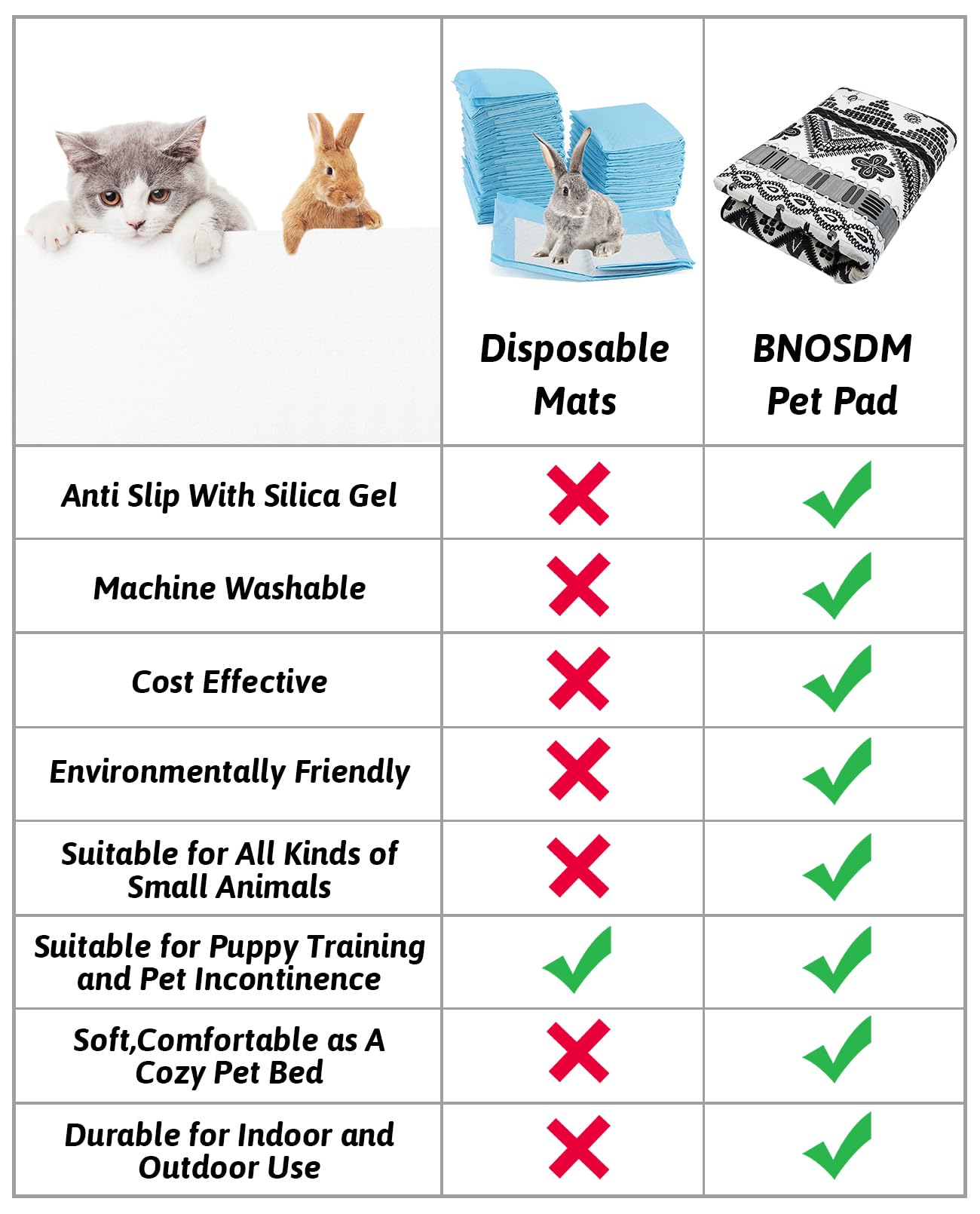 Why choose BNOSDM large washable floor mat for bunny? 1. Crystal velvet fabric, comfortable and healthy. 2. Bunny mats for cages can be used repeatedly for a long time, reducing clutter. 3. Multipurpose, can be placed at home as a training pad, pet under the baby pad. Lovely design The cartoon print design on the surface of the bunny cage liner for bunnies is not only beautiful and fashionable, but also convenient for you to clean up your pet's hair, hay and feces. Anti-slip Bottom The silicone point at the bottom of the bunny mats for cage can increase the friction with the ground, prevent slipping and movement, and escort the health of the pet skeleton. Easy to clean You only need to clean up the sundries on the surface of the washable pads for rabbits and then wash it by hand or put it into the washing machine. Adding white vinegar to the cleaning process can help remove the odor, and then dry it for your pet to use. Specification Project Name: large rug for rabbits Material: crystal velvet 2 Sizes: ? 79 x 55 inches, ? 91 x 63 inches Washing method: machine wash or hand wash NOTE 1. There may be an error of 1-3 cm due to manual measurement. 2. Slight chromatic aberration may exist due to different displays.