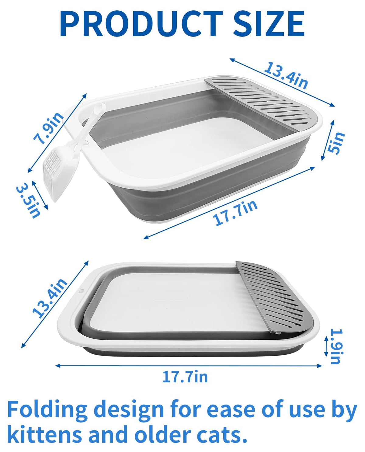 Open Designlarge Opening Diameter, Cats To Enter And Exit Freely, Increases Air Circulation And Dispels Unpleasant Odors.Hanging Hole Designwhen Idle, You Can Hang Conveniently And Quickly. You Can Also Hang The Cat Litter Scoop On It.Folding Designwhen Folded, Senior Cat Litter Box Low Entry Takes Up Very Little Space. Making It Easy To Carry, Convenient Installation.Pedal Designtravel Kitty Litter Box Is A Hollow Out Pedal Design At The Entrance And Exit. Just Lift And The Cat Litter Falls Back Into The Pan. ?Multipurpose?Cat Litter Boxes For Indoor Cats Can Also Be Used As A Kitchen Sink, Toolbox, Cat Bed Or Bathtub, Very Suitable For Travel, Camping, Picnic.?Sturdy Materials?Travel Cat Litter Box Is Made Of Durable Pp And Silicone Material, Not Easy To Deform, And Can Be Folded Repeatedly.Specification Name: Travel Litter Box For Cats Material: Pp+ Silica Gel Color: Blue, Grey, Pink Small Size: Before Unfolding: 17.7L'''' 13.4W'''' 1.9''''H. After Expansion: 17.7L'''' 13.4W'''' 5''''H. Large Size: Before Unfolding: 20.9L'''' 15.7W'''' 2''''H. After Expansion: 20.9L'''' 15.7W'''' 5.7''''H. Applicable Object: Cat And Dog Universal Features: Durable, Practical