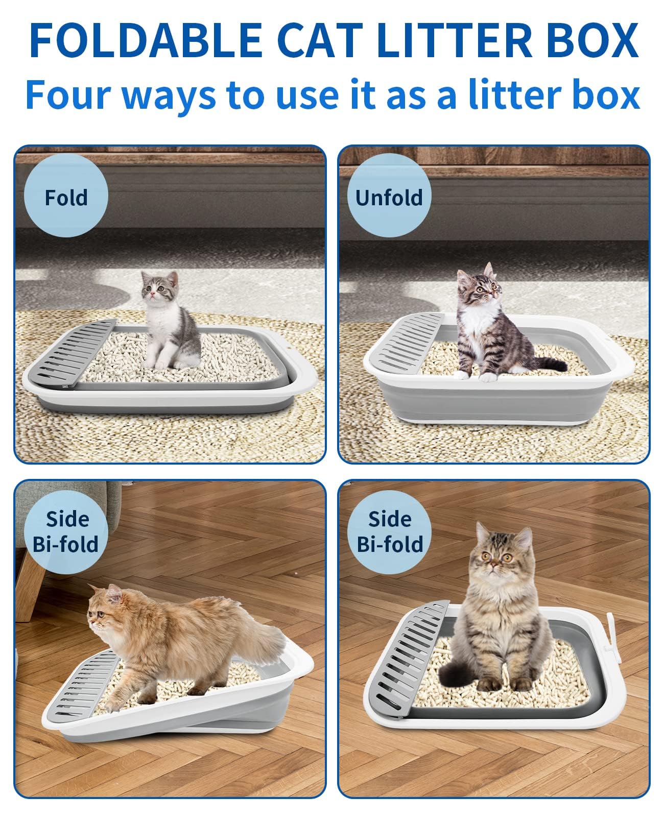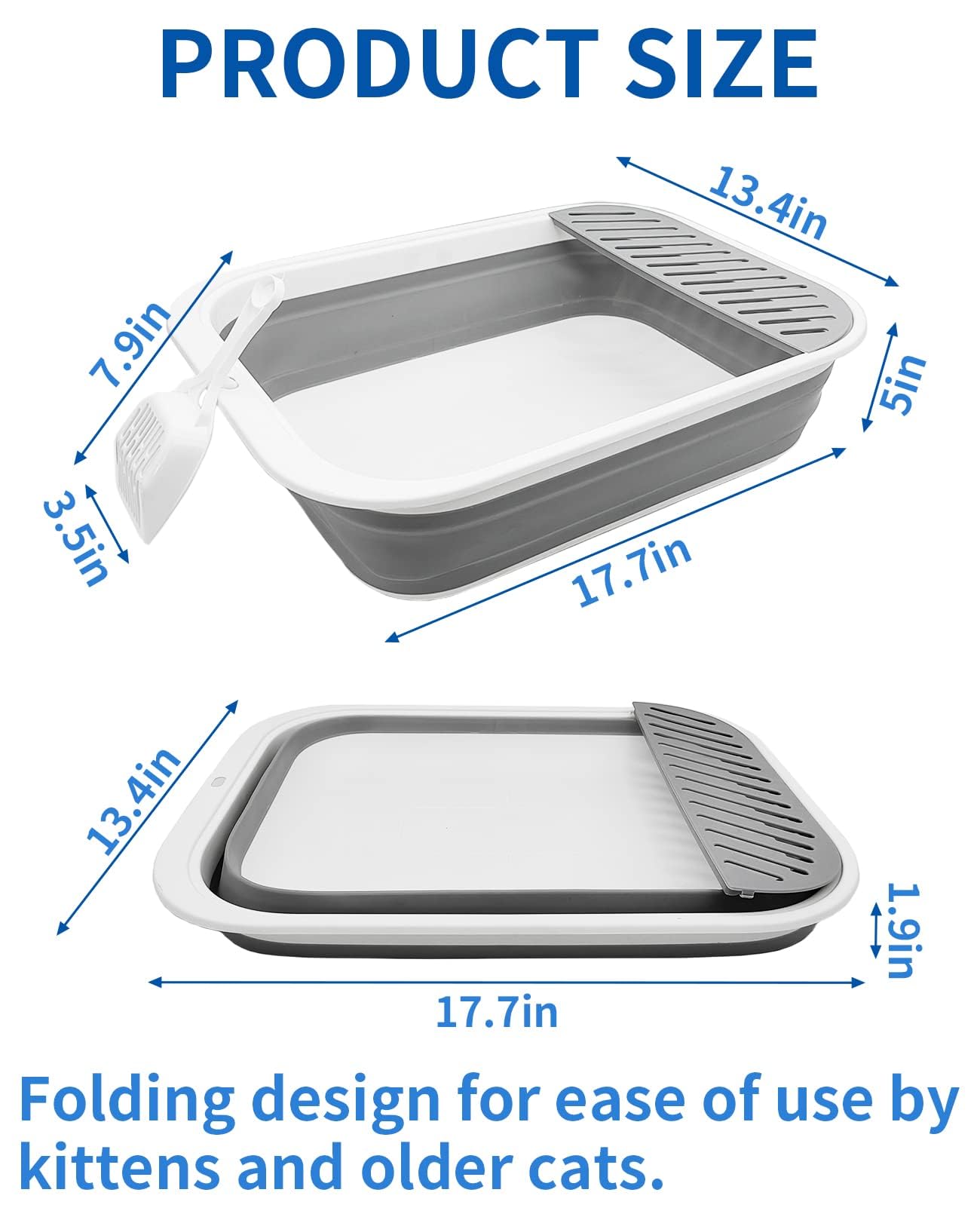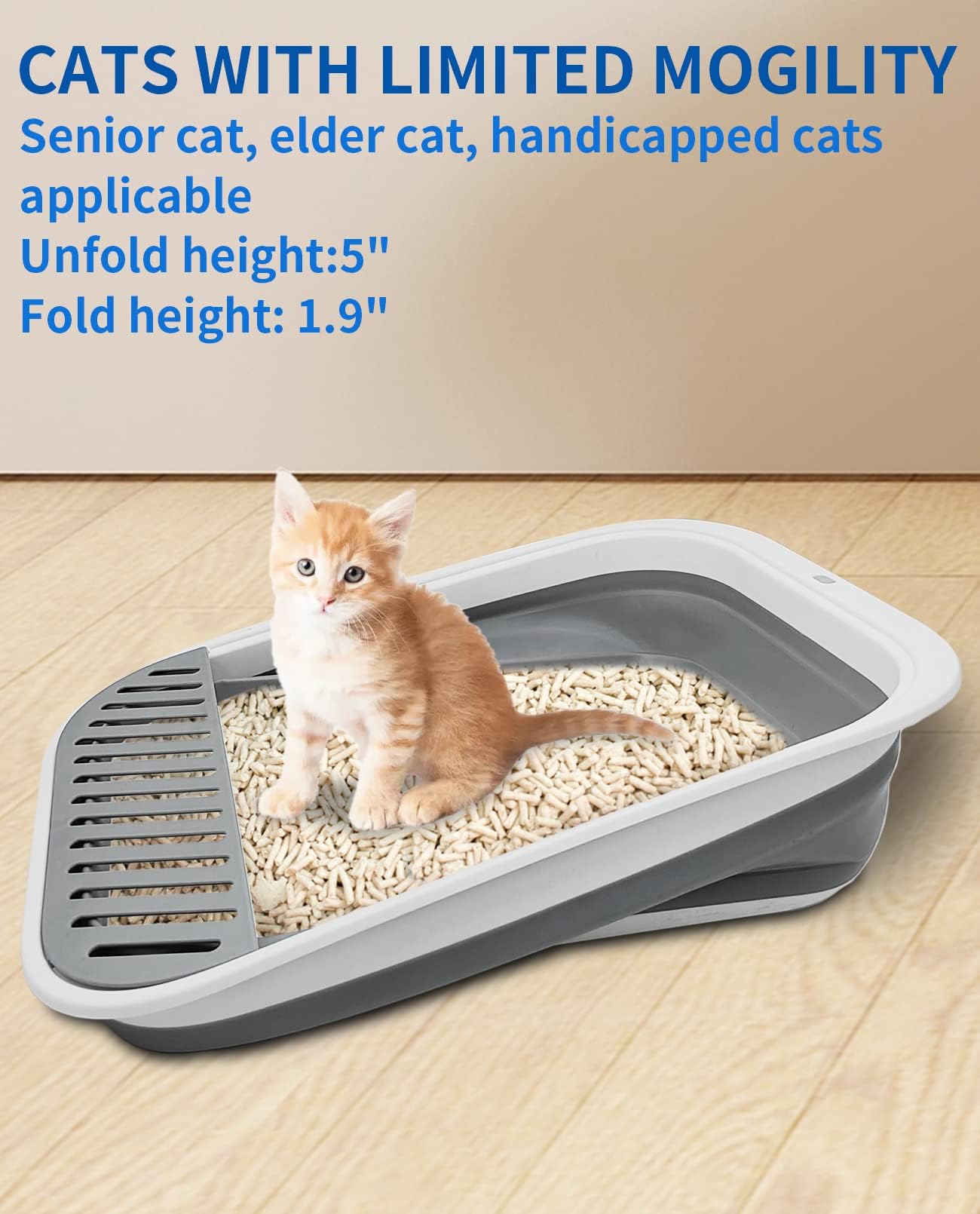Bnosdm Collapsible Small Cat Litter Box For Kittens Open Potty Pan Foldable Cat Toilet With Scoop Senior Kitty Travel Shallow Li