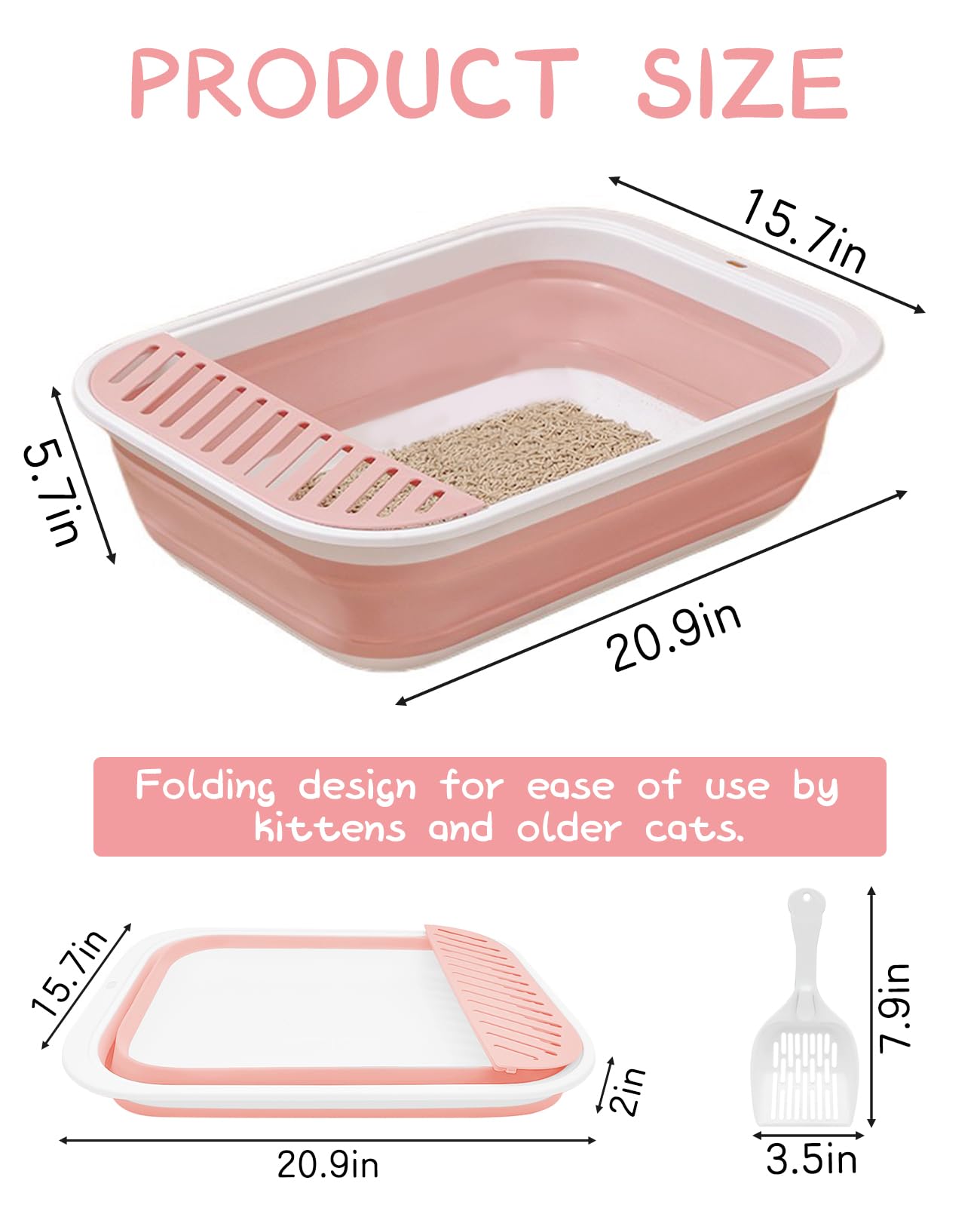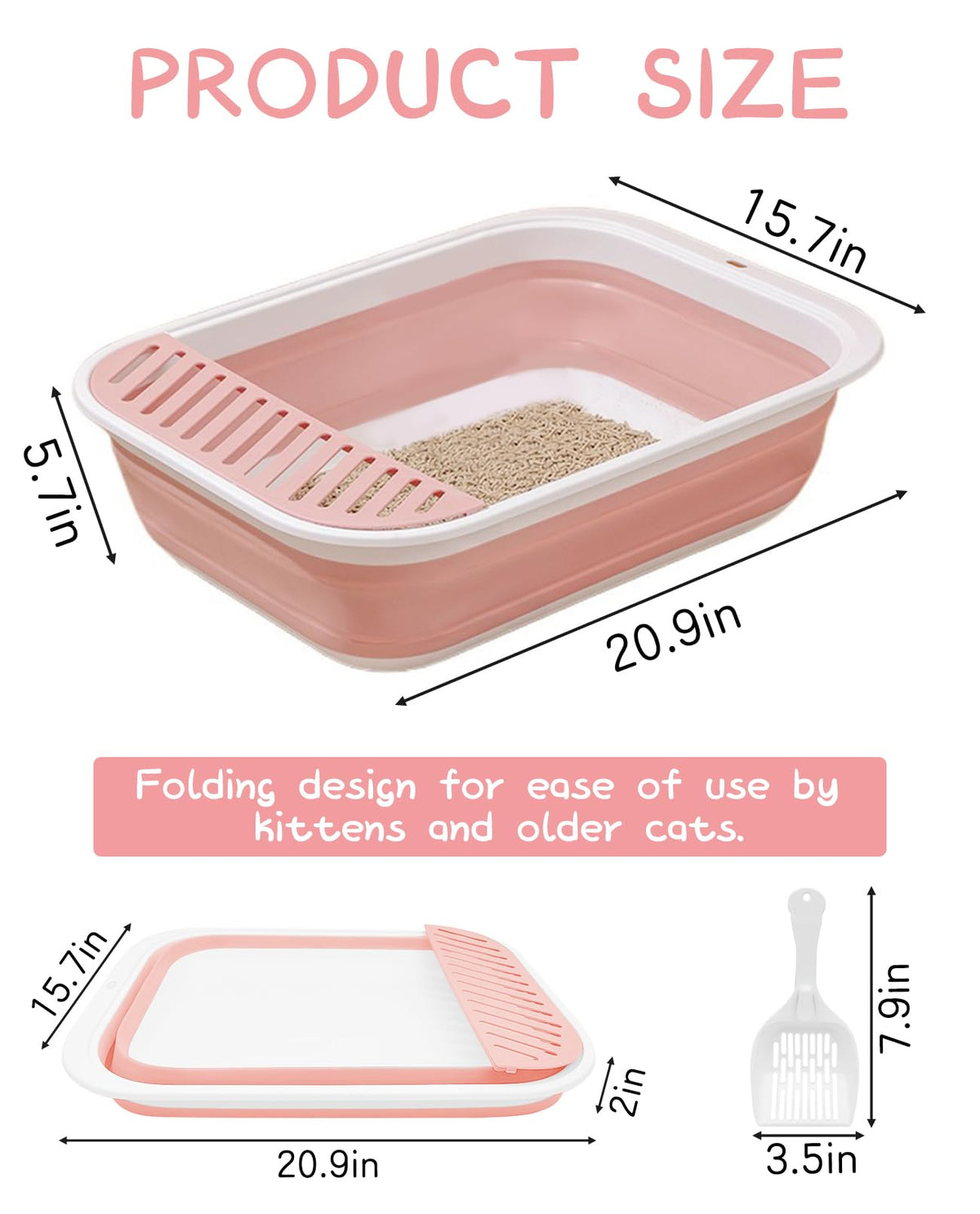 Bnosdm Foldable Small Cat Litter Box For Kittens Open Potty Pan Collapsible Cat Toilet With Scoop Senior Kitty Travel Shallow Li