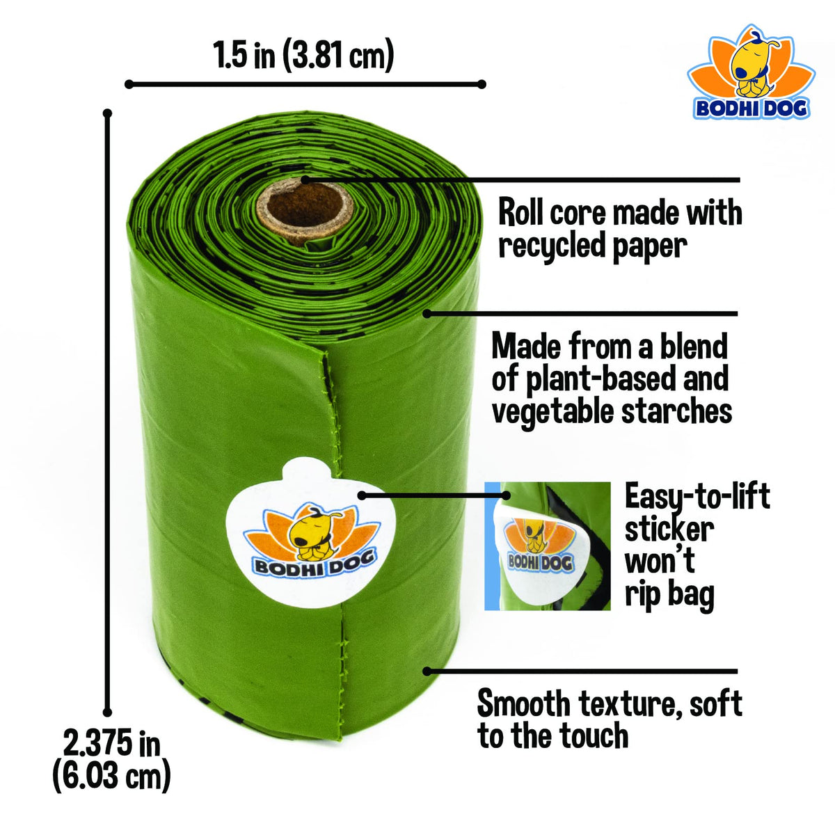 Bodhi Dog Pooper Scooper Bags With Core - 120 Thick Leak-Proof Pet Waste Bags, Fits Standard 6-Inch Scoops, Durable & Easy To Us