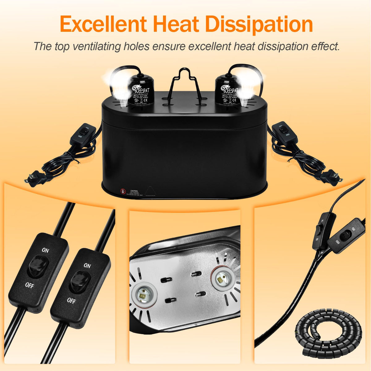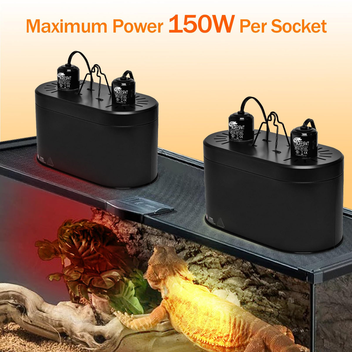 Boeespat Dual Reptile Reflector Dome Lamp Fixture Cap With Separate Switches For Reptile & Amphibian Habitat Terrariums (Max 150