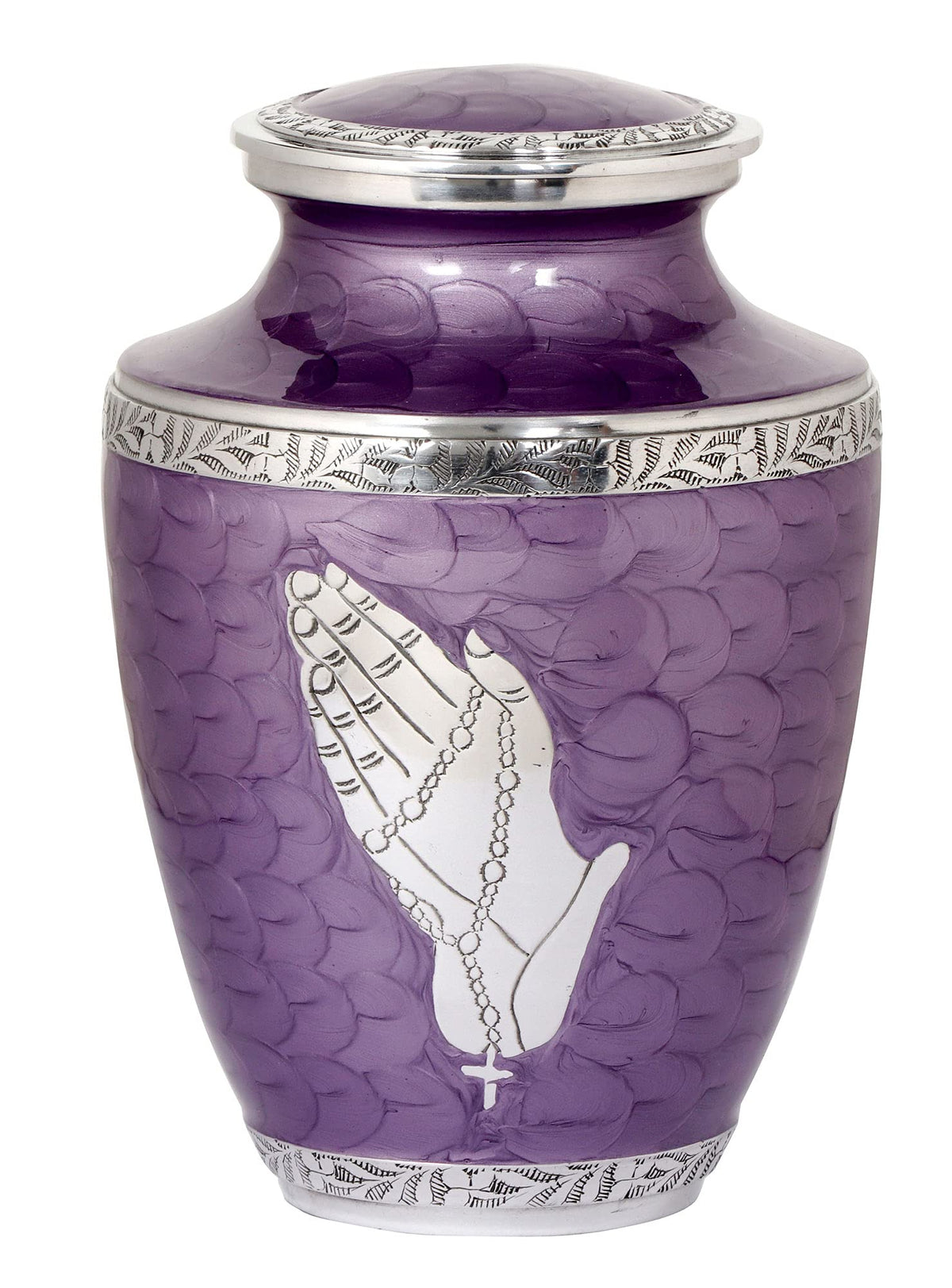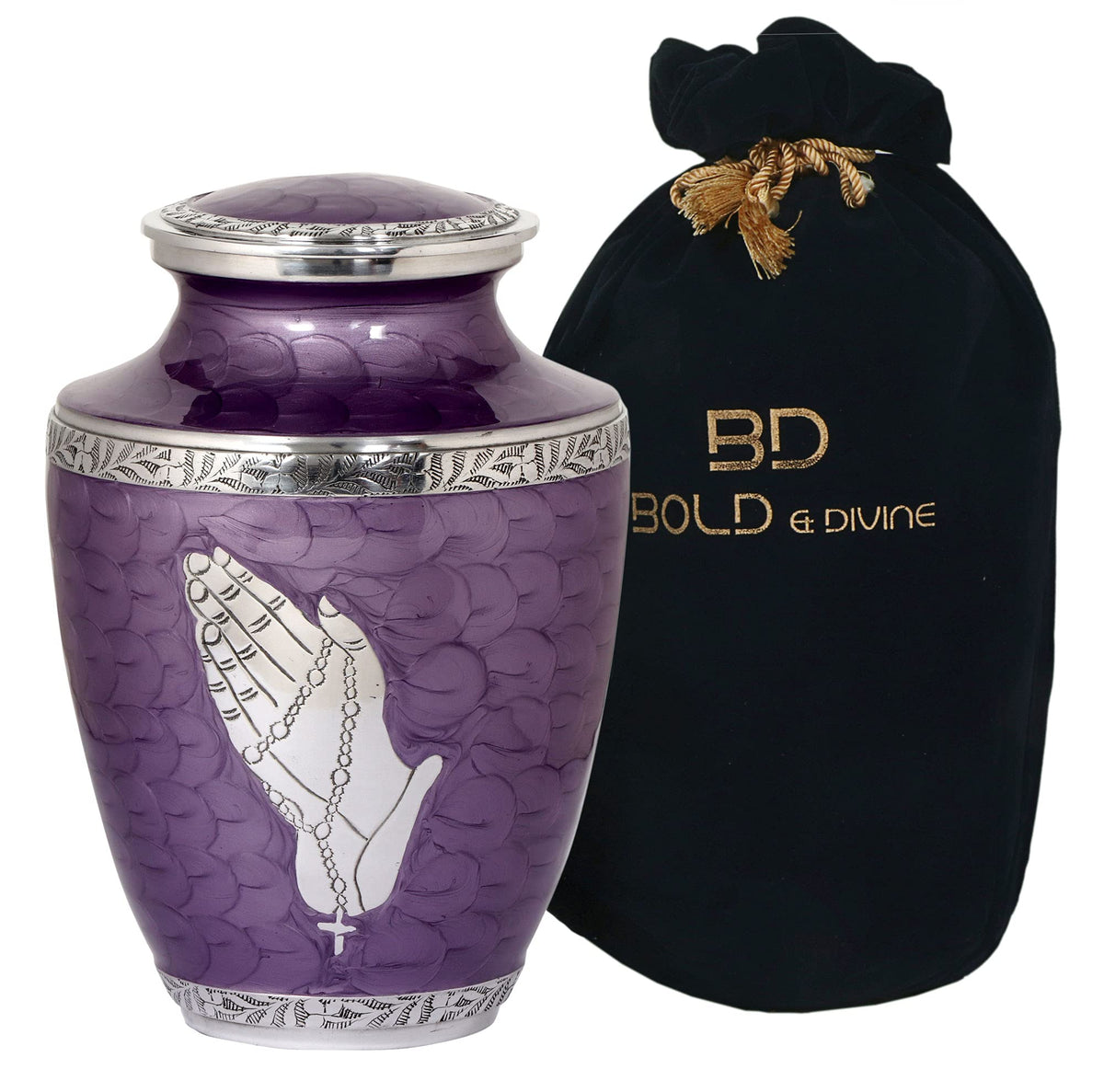 Bold & Divine™ Praying Hand Large Adult Urn For Human Ashes |A Simple Elegant, Handcrafted And Minimalistic Resting Place For Your Loved One - With Beautiful Velvet Bag - Purple