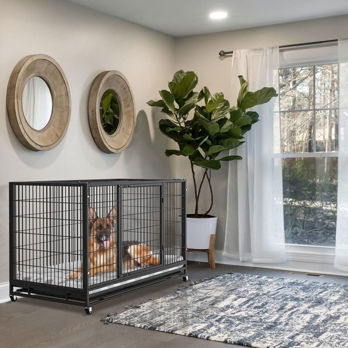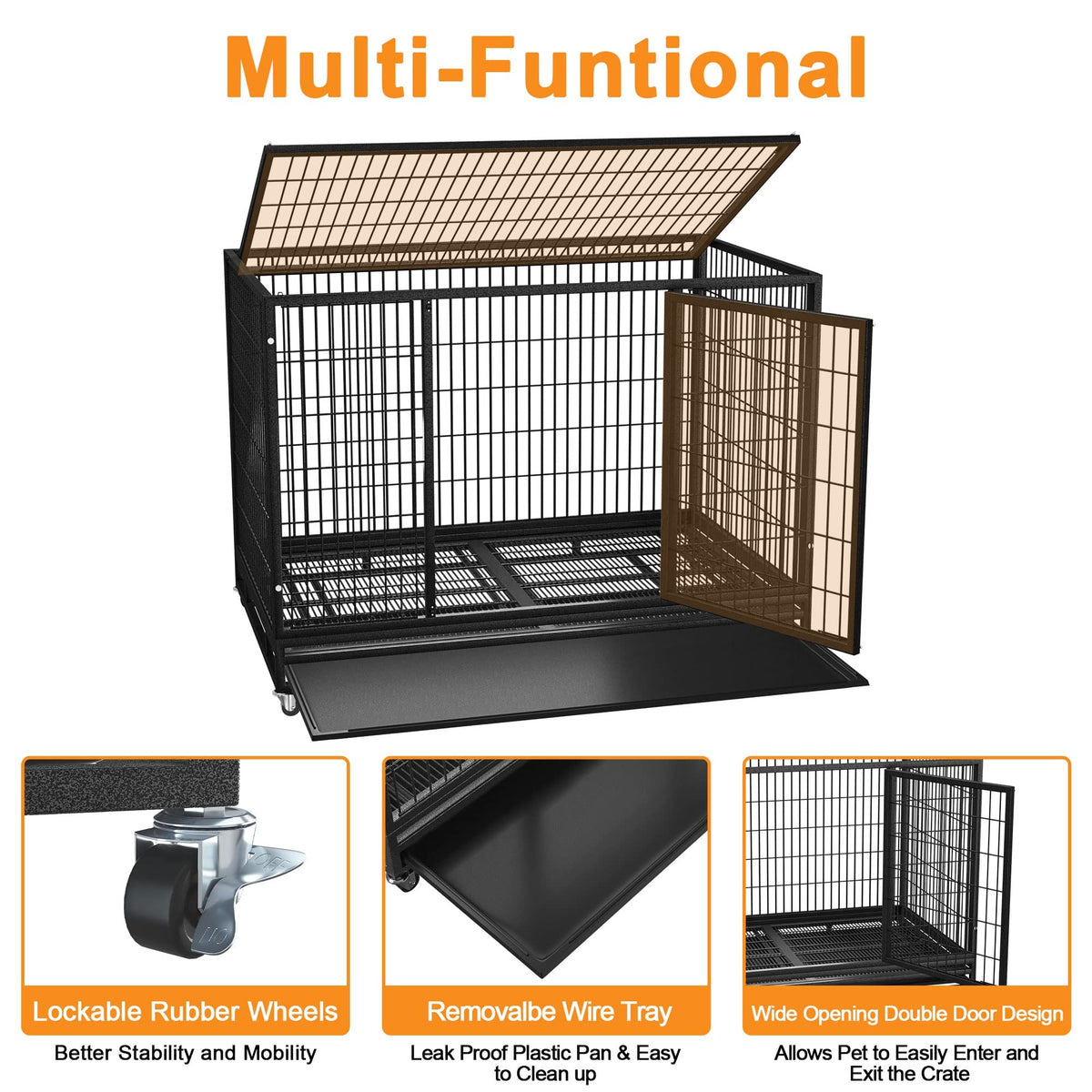 BOLDBONE 48/37 inch Heavy Duty Wire Dog Crate Cage Kennel for Large Dogs, High Anxiety Dog Crate with Removable Crate Trays, Whe