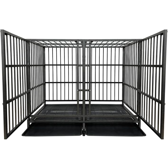 BOLDBONE 54 Heavy Duty Indestructible and Escape-Proof Dog Crate Cage Kennel with Divider for 2 Large Dogs, High Anxiety Dog Cra