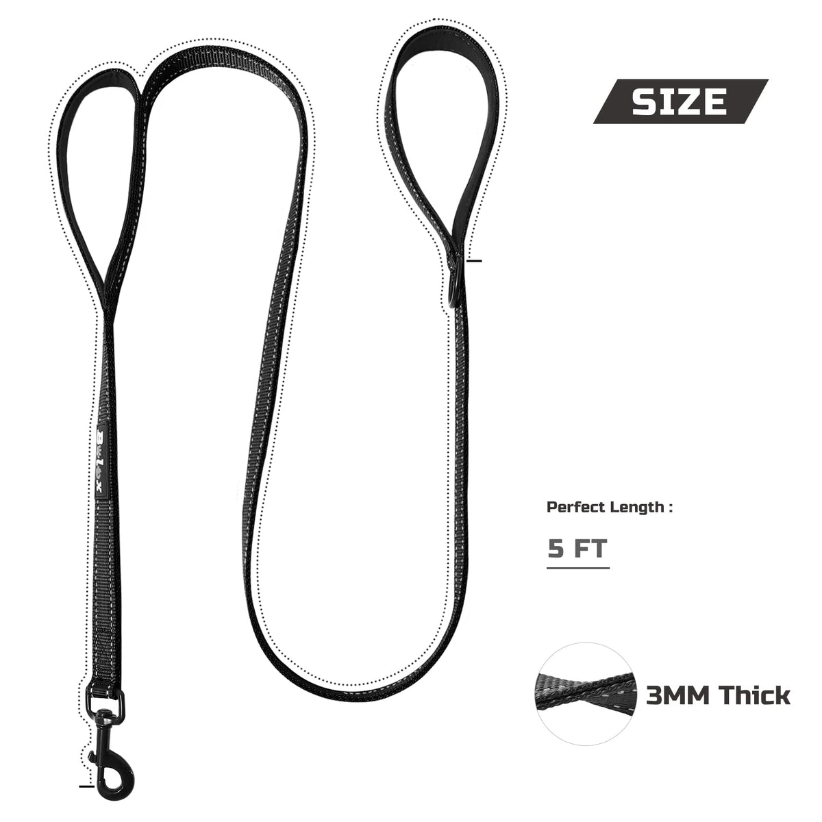 Bolux 3M Reflective Dog Leash 5Ft Long With Traffic Padded Handle, Heavy Duty, Double Handle Lead For Greater Control Safety Tra