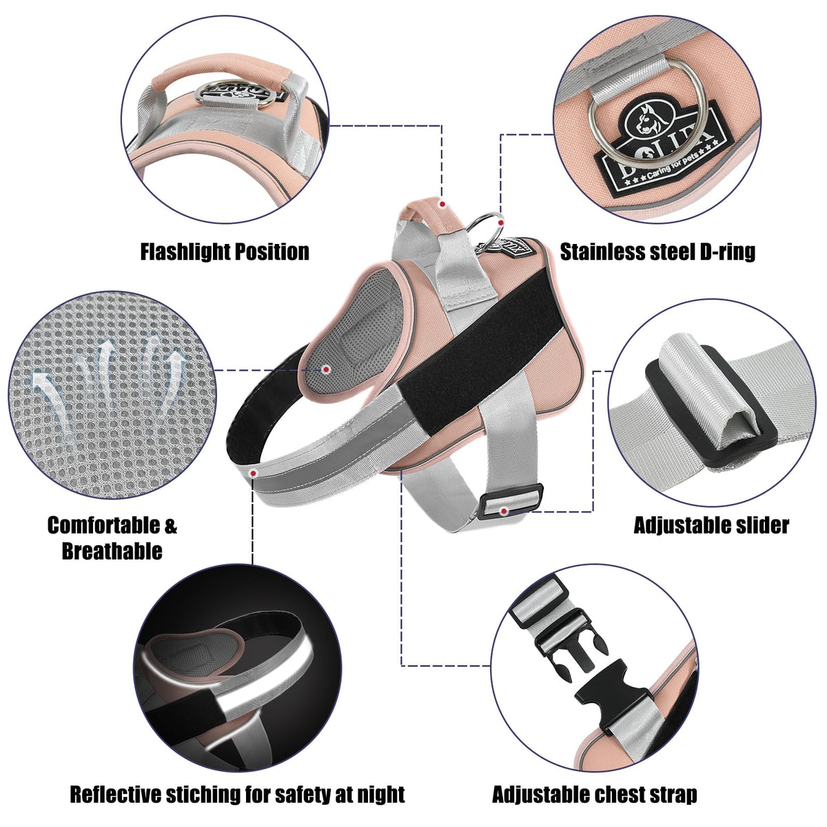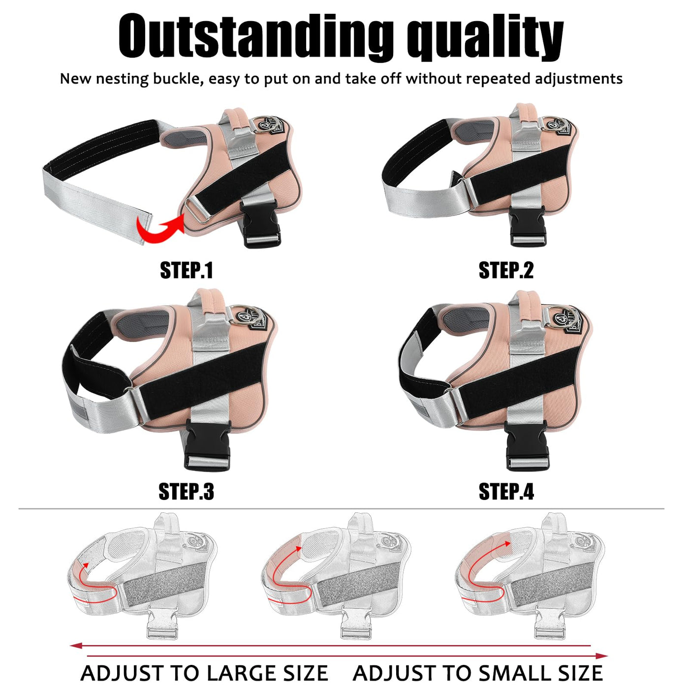 STURDY HANDLE: The adjustable dog harness with rugged nylon handle further enhances your distance from the dog and is more intimate with each other. Easy on dog harness is also the best partner for dogs and is easy to control your dog.