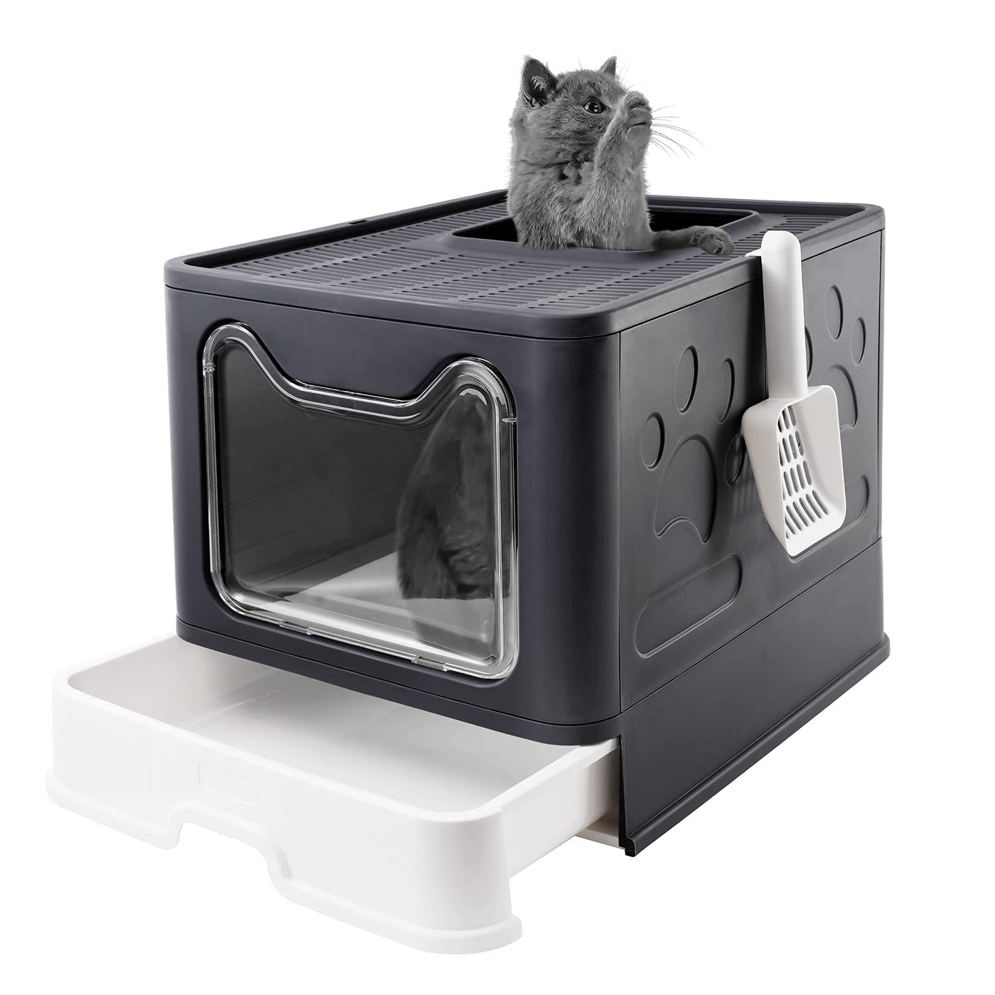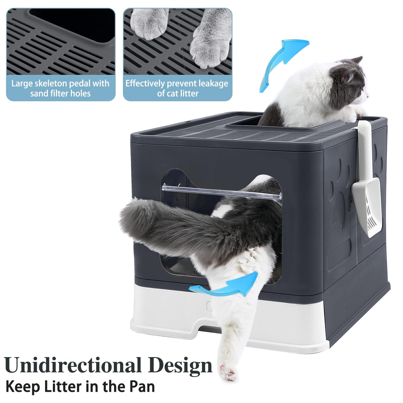 Foldable Cat Litter Box With Lidbolux Foldable Cat Litter Box Is Convenient Installation It Has Large Space After Unfolding, Provide A Spacious, Comfortable And Private Toilet Environment For Your Cats You Can Store It When Not In Usethe Drawer Design Tray And Litter Scoop Makes Cleaning Faster And More Convenient Just Dragging The Tray Out And Matching With A Cat Litter Scoop Make Cleaning Of Cat Litter With Less Job Prefect Gift For Cat High-Quality Pp And Ps (Transparent Curtain) Materials Are Applied To Ensure The Safety Of Pets The Large Cat Litter Box Suitable For Cats Of All Breedscat Litter Box With One-Way Design, Front Entry And Top Exit Cat Couldnt Come Out From Front Door, Which Prevent Cat Litter Everywhere Small Holes On The Top Will Filter Out Litter As Cat Exits From The Top You Will Never See Cat Litter Other Than The Cat Litter Boxspecification:Folded Size: 20 X 16 X 5 Unfold Size: 20 X 16 X 15 Weight: 617 Lbcolor: Pink, Blue, Grey, Purple, Dark Grey, Teal Blue