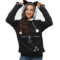 Bombaxceiba Hoodie Pet Holder Cat Dog Large Pouch Pocket Carriers Pullover With Cat Print Sweatshirt Unisex Kangaroo Pocket (Bla