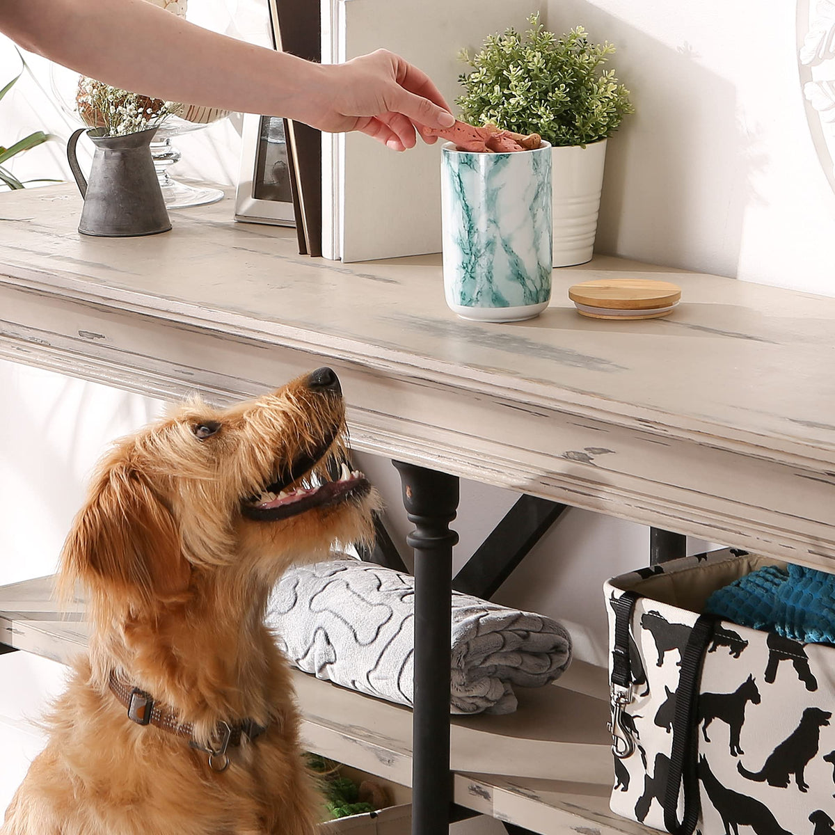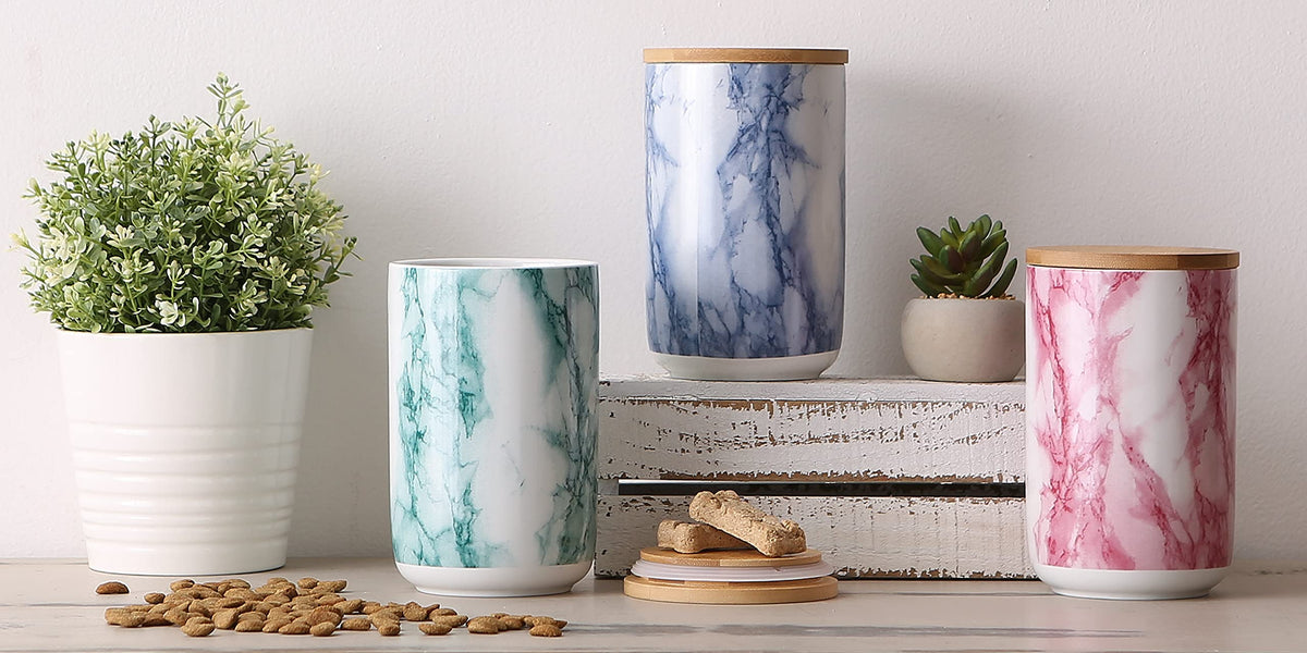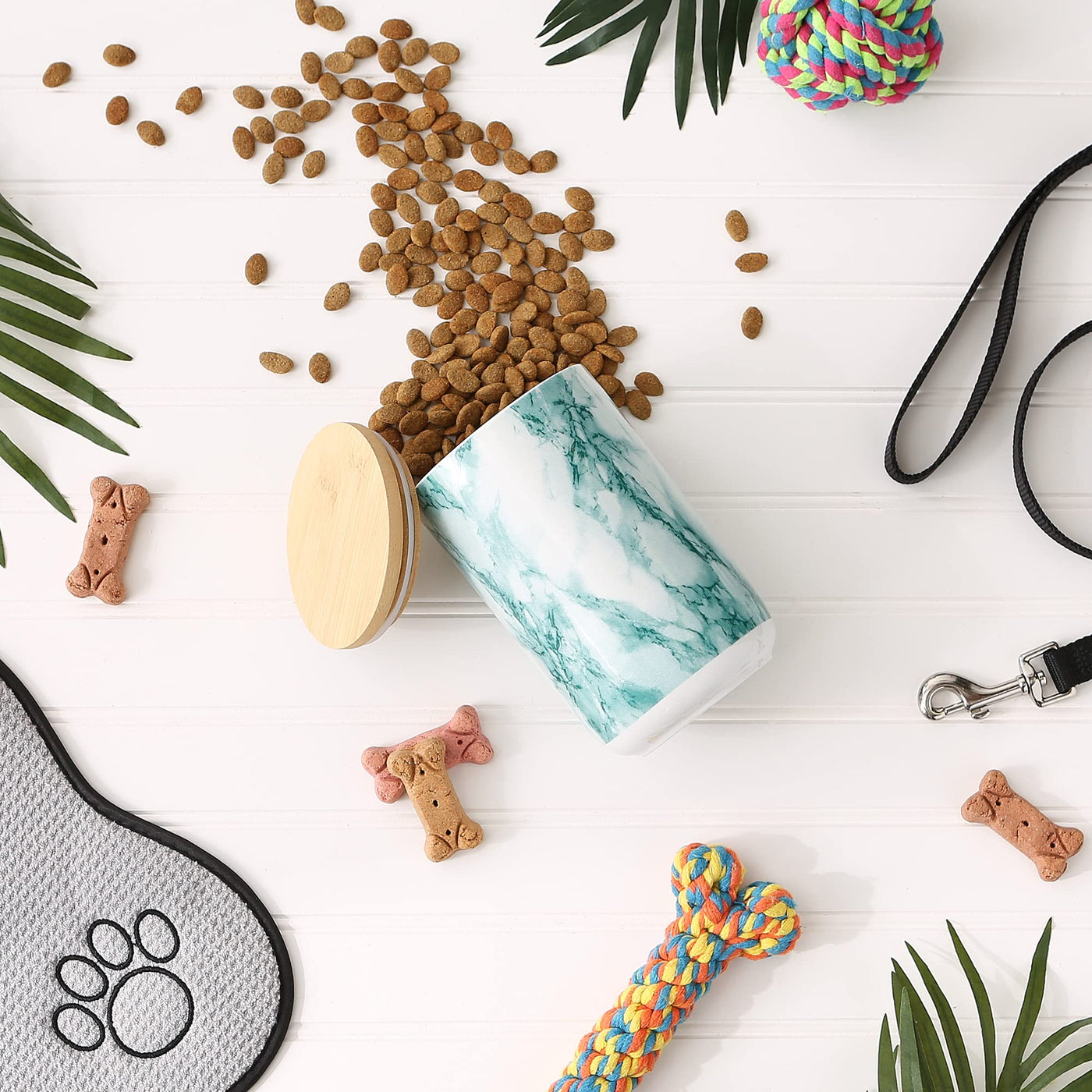 Bone Dry Ceramic Marble Treat Jar for Pets Dishwasher Safe, Dishwasher Safe, Bamboo Lid - Push & Twist to Close, Canister, 4x6.5