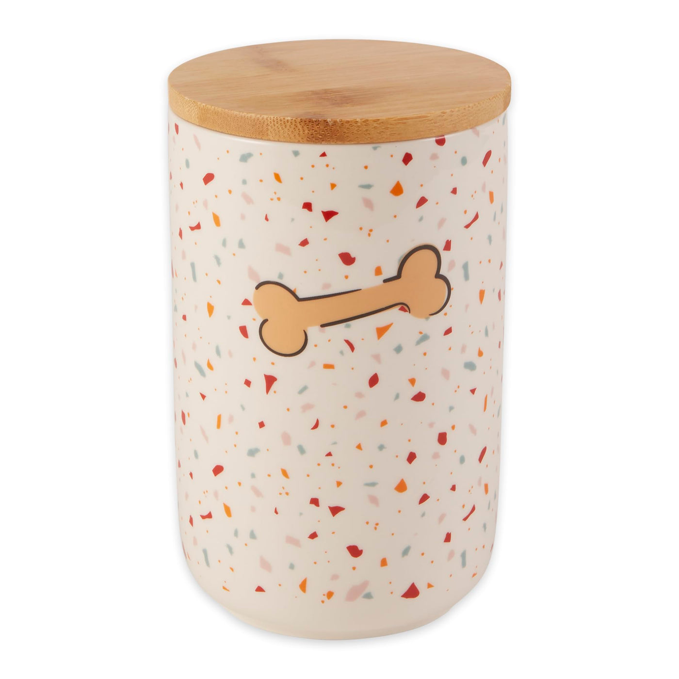 Bone Dry Ceramic Pet Treat Canister, Dishwasher Safe, 4x6.5 Terrazzo