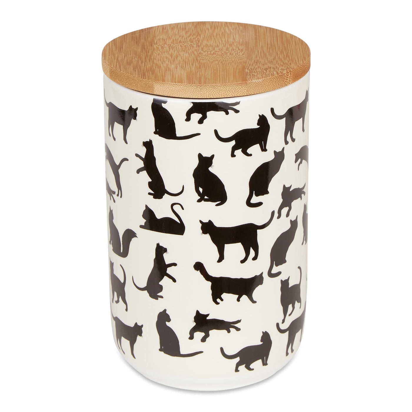 Bone Dry Ceramic Treat Jar for Cats and Dogs, Bamboo Lid, Dishwasher Safe Canister, 4x6.5, Black/White, Cat Treats