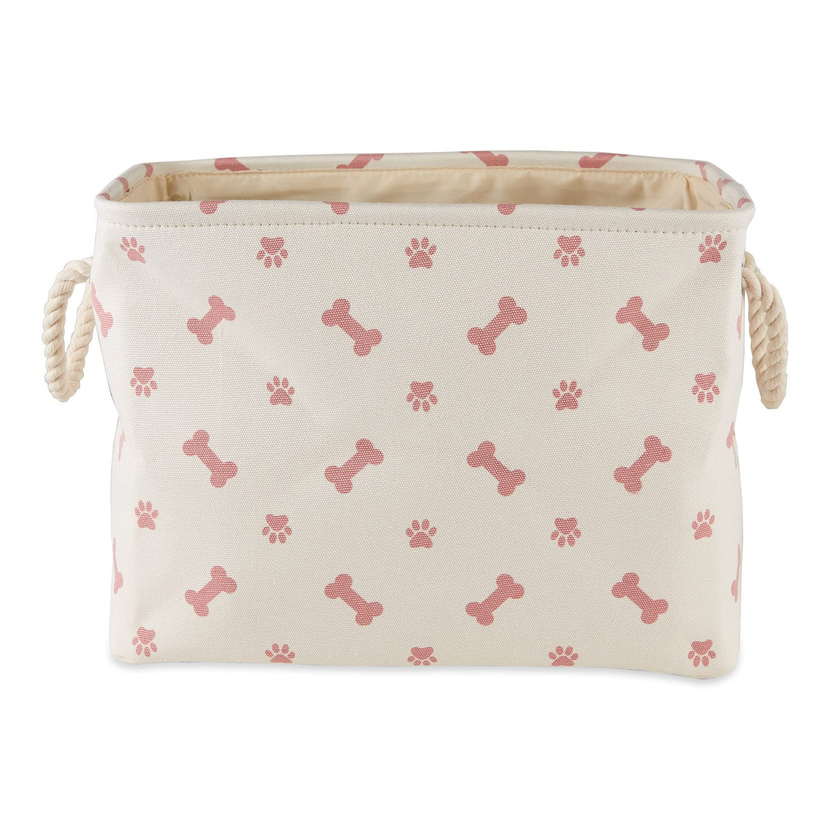 Bone Dry Pet Storage Collection Paw And Bone Print, Small Rectangle, 14X8X9'', Rose