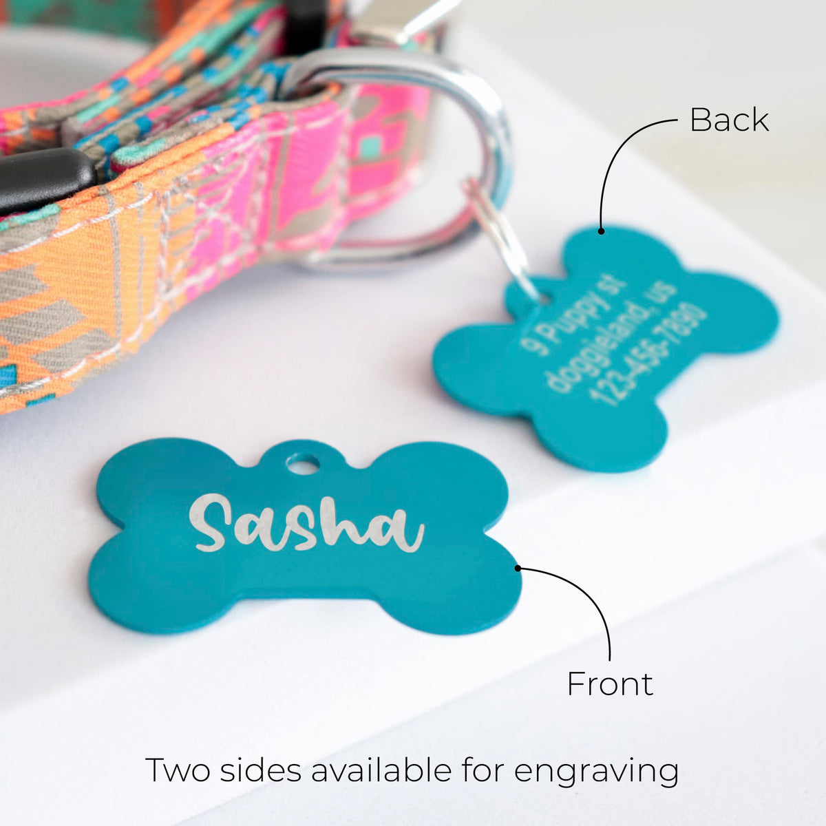 These Cute Lightweight Aluminum Bone Tags Pet Tags Are Comfortable, Easy To Use And You Can Add Them To Different Collars.&Nbsp;We Are A Small Family Company So We Appreciate That You Are Considering Us And Any Question You Might Have Please Send Us A Message And We Will Gladly Help You. .Item Details?Sizes: Two Sizes Available:Small Bone: 1.25 X 0.75 Inlarge Bone: 1.6 X 1.1 In?Colors: Nine Colors For You To Choose?Materials: Aluminum?Every Tag Comes With A Ring.&Nbsp;No Collar Is Included?Two Sides Available For Engraving:&Nbsp;&Nbsp;You Can Add Up To 4 Lines On Each Side Of The Large Bone With Up To 20 Characters On Each Line, And Up To 3 Lines On Each Side Of The Small Bone With Up To 15 Characters.How To Order?Click&Nbsp;''Customize Now''?Personalize Your Productexampleline 1: Mimiline 2: Help Me, I Am Lostline 3: Lane: 876-876-8787?Choose Your Shipping Option?Checkoutplease Write Us If You Have Any Question. Your Satisfaction Is Our #1 Priority.