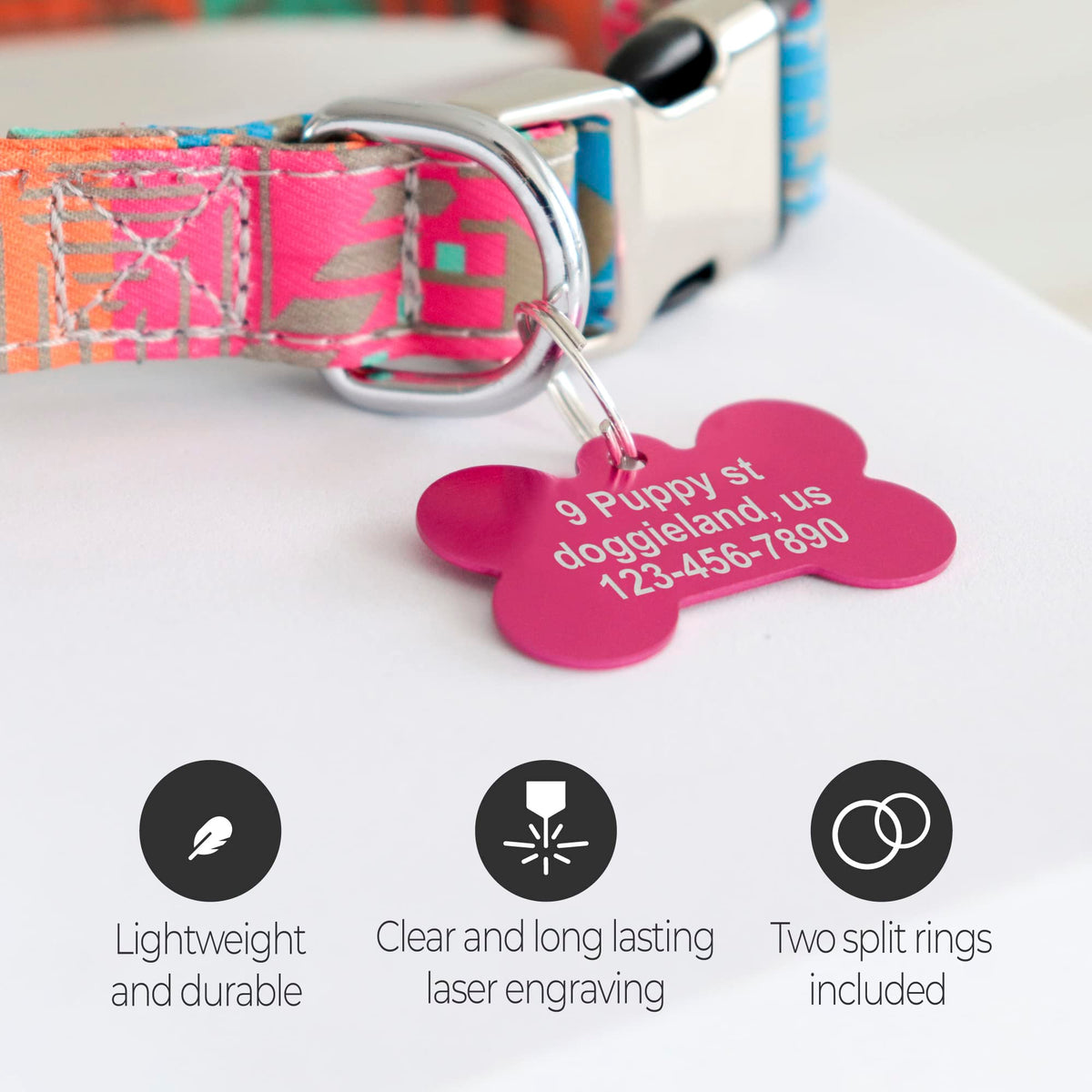 Bone Shape Dog Id Tags Aluminum Custom Laser Engraved Both Sides With Up To 4 Lines Of Text, Dog Name Tags Personalized With Dur