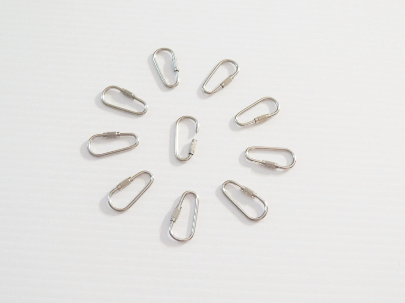 12 Pear Links Nickel Plates Small: These Baby kinks as we like to call them are great to use on small toys. They are approx 1 1/8' long. They are nickle plated making them safe to use for bird toys. Just wash and reuse them over and over again. Just as with any metal, make sure to dry them well so they do not rust. If you need larger sizes we have them as well. We also carry stainless steel pear links and C-Clamps in both nickle plated and stainless steel.