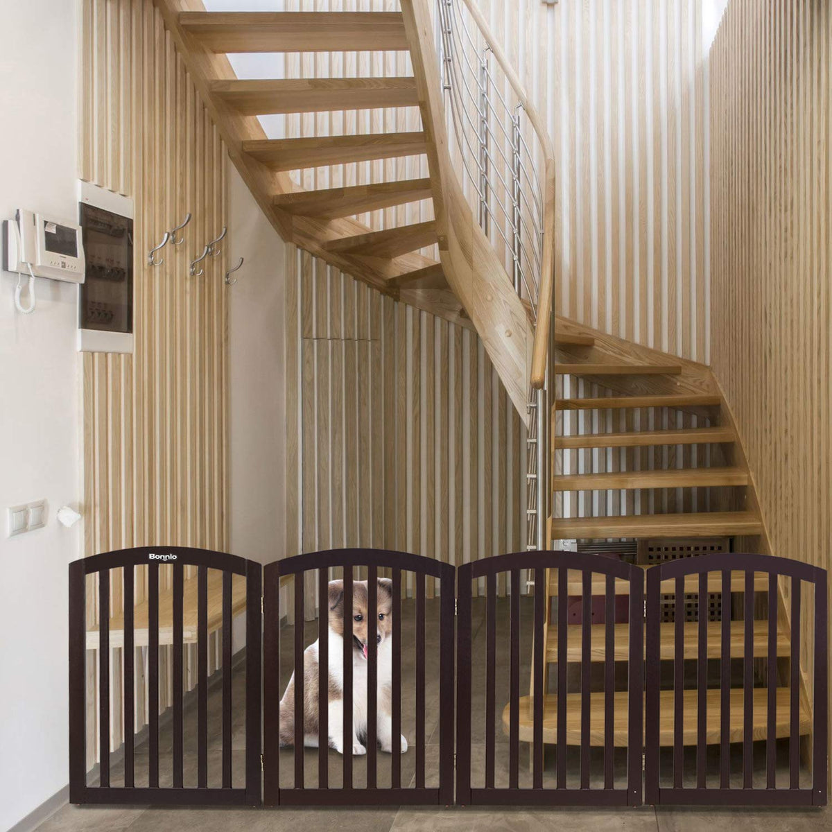 This Bonnlo Freestanding Wooden Pet Gate Is An Elegant Solution To Block The Steps To Limit Your Dog'S Access To Other Parts Of The House. Attractive And Stylish Design With Beautiful Finish, The Understated Modern Style Allows It To Blend In Seamlessly With Any Interior Decor Styles.