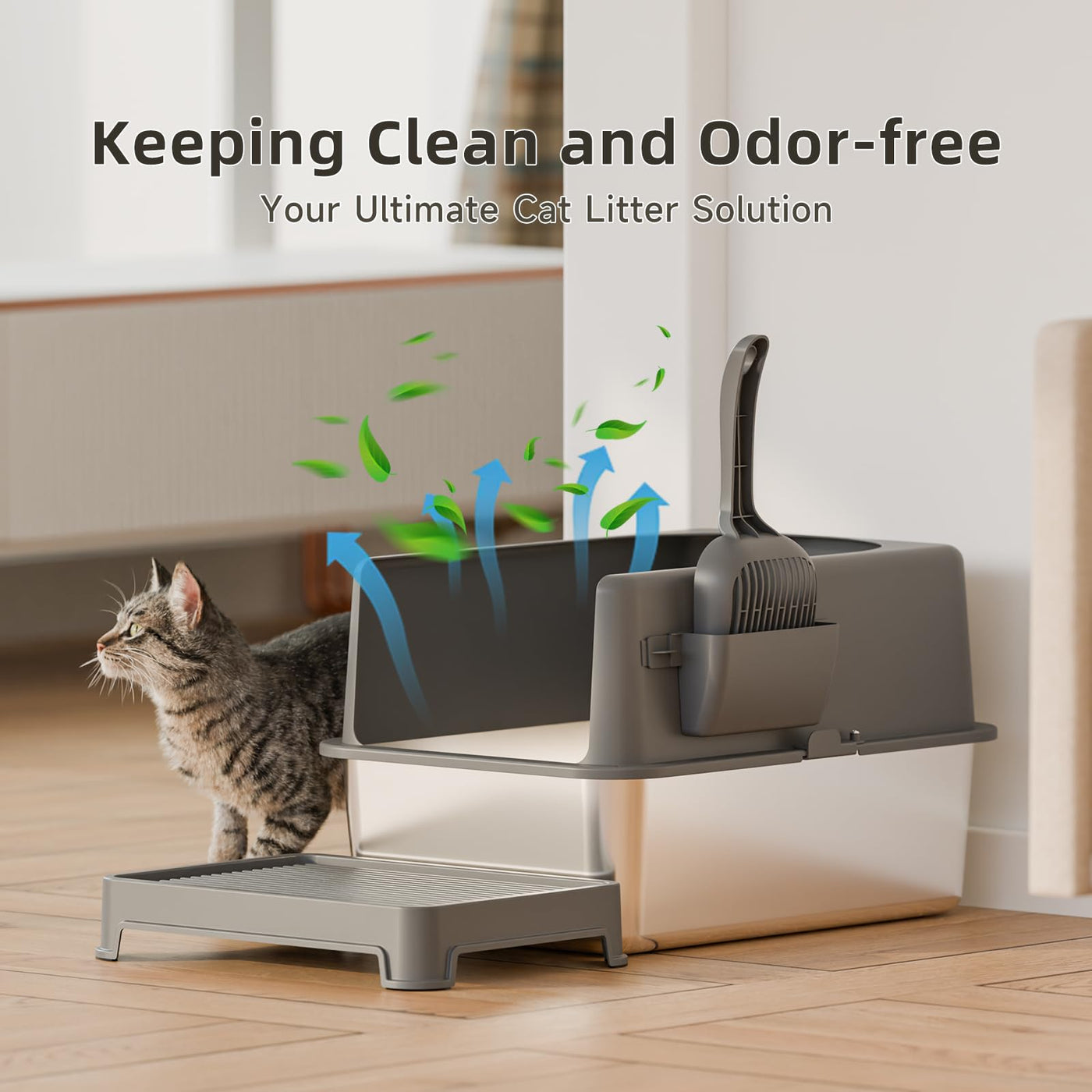 Booche High-Sided Stainless Steel Cat Litter Box,Stainless Steel Litter Box with Lid,Extra Large Litter Box,Easy-to-Clean Metal