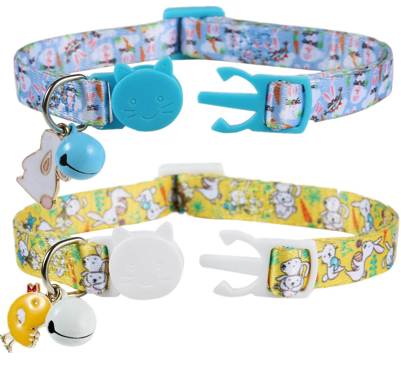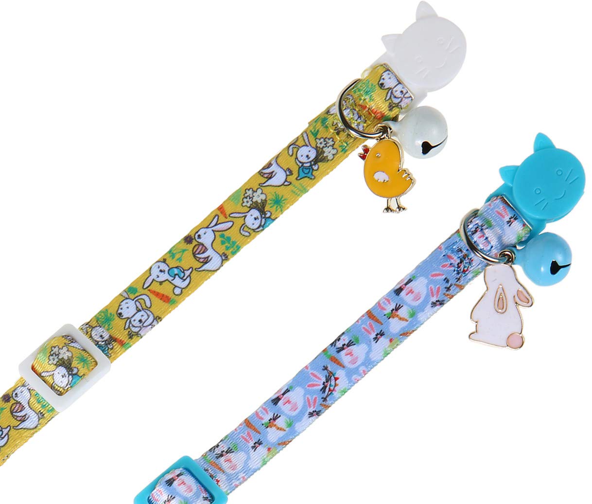 This 2 Pack Festive Easter Pet Collars Set With A Safety Breakaway Plastic Clasp Is Durable,1 Pcs Is Yellow Filled With Rabbit And Carrot ,Another One Is Blue With Rabbit. No Matter Boy Or Girl,They Both Matches Very Well