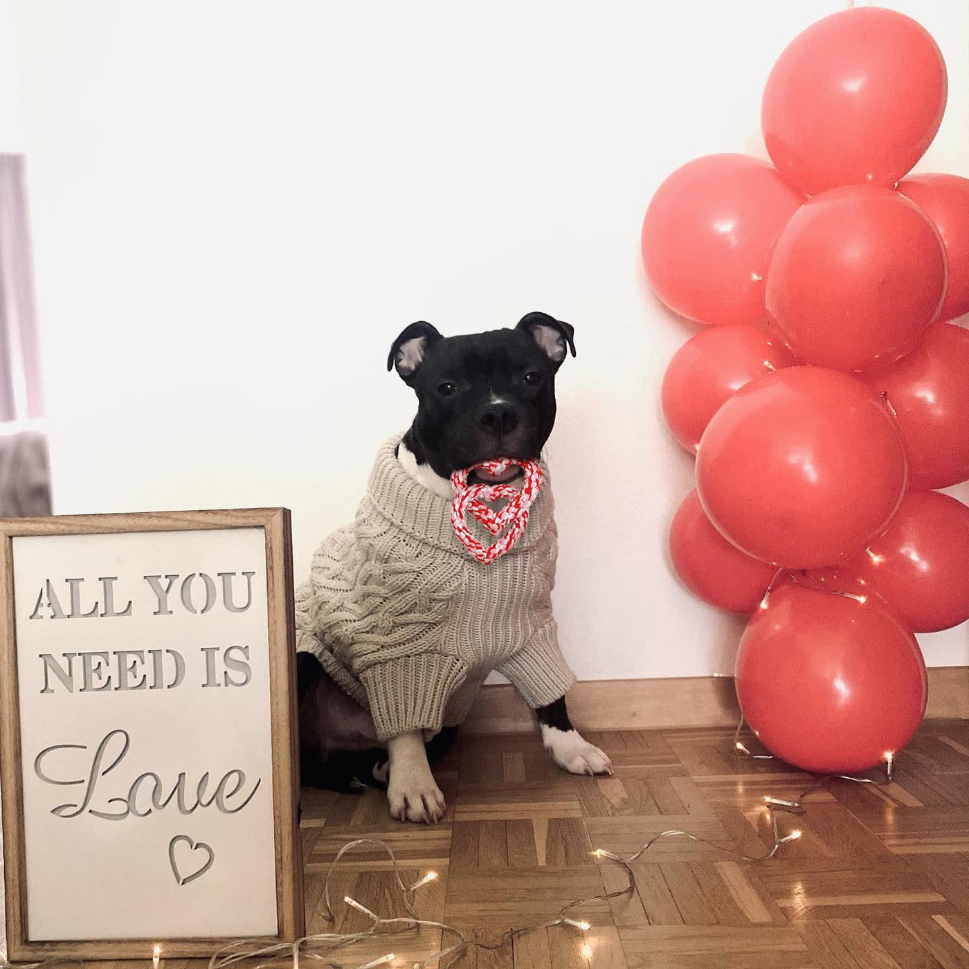 Boombone Valentines Dog Toy, Interlocking Heart Dog Rope Toy, Small Medium Dog Toy