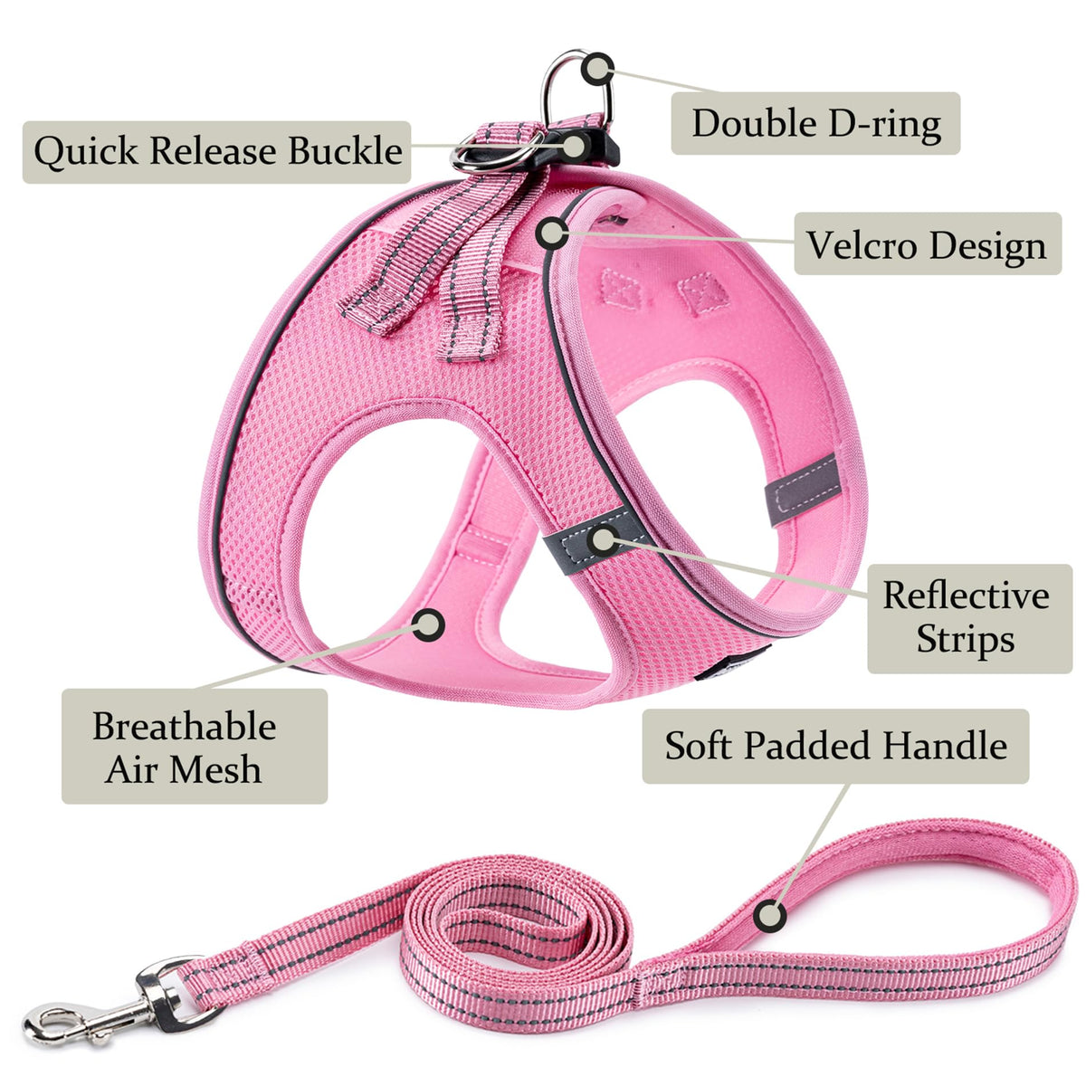 No Pull Adjustable Dog Harness - Your Dog Will Enjoy The Daily Walk In This Comfort Dog Harness! Mesh Dog Harness With Leash Set For Small Medium Large Dog And Cat. - All Weather Mesh: Made Of Double Layered Soft Mesh Fabric And Built To Last, Which Is High-Density, Soft And Comfortable, And Can Prevent Chewing Or Tearing. - Safety Reflective: The 360 Highly Reflective Enhance Helps Your Pets Visibility During Early Morning And Late Evening Strolls For Safety. - Three Safety Features:Our Hook And Loop Fastener, Buckle And Double D-Rings Work Together Protect Your Pet In Three Layers Of Security. - No Pull & No Choke: Our Non-Pulling Dog Harness Helps Remove Pressure Around The Chest And Helps Prevent Stress And Strain On Your Pets Neck. - Easy To Use: No More Struggling With Pulling Harnesses Over Your Pets Head - Simply Step-In, Clip And Go! - 1 Harness + 1 Leash, Great Value! Ideal Personalized Dog Harness And Leash Set For Small Medium Large Boys & Girls. Size Size: Xxs ( Neck: 9''-10.5'', Chest: 10''-12'', Rope Length:5Ft ) Size: Xs ( Neck: 10.5''-12'', Chest: 12''-14'', Rope Length:5Ft ) Size: S ( Neck: 12''-13.5'', Chest: 14''-16'', Rope Length:5Ft ) Size: M ( Neck: 13.5''-15'', Chest: 16''-18'', Rope Length:5Ft ) Size: L ( Neck: 15''-16.5'', Chest: 18''-20'', Rope Length:5Ft ) Warm Prompt Please Follow The Size Chart To Measure Your Dog'S Neck And Chest Carefully Before You Place The Order To Ensure The Pet Harness Is Fit Well To Your Dog. Please Allow 1-2Cm (O.4-0.8'') Difference Slengthdue To Manual Measurement.