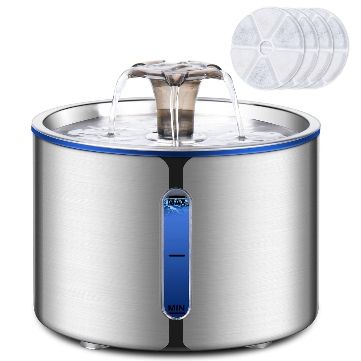 Boorca Cat Fountain, 84Oz/2.5L Stainless Steel Pet Water Fountain, Automatic Dog Water Dispenser, Water Level Window, Ultra-Quie