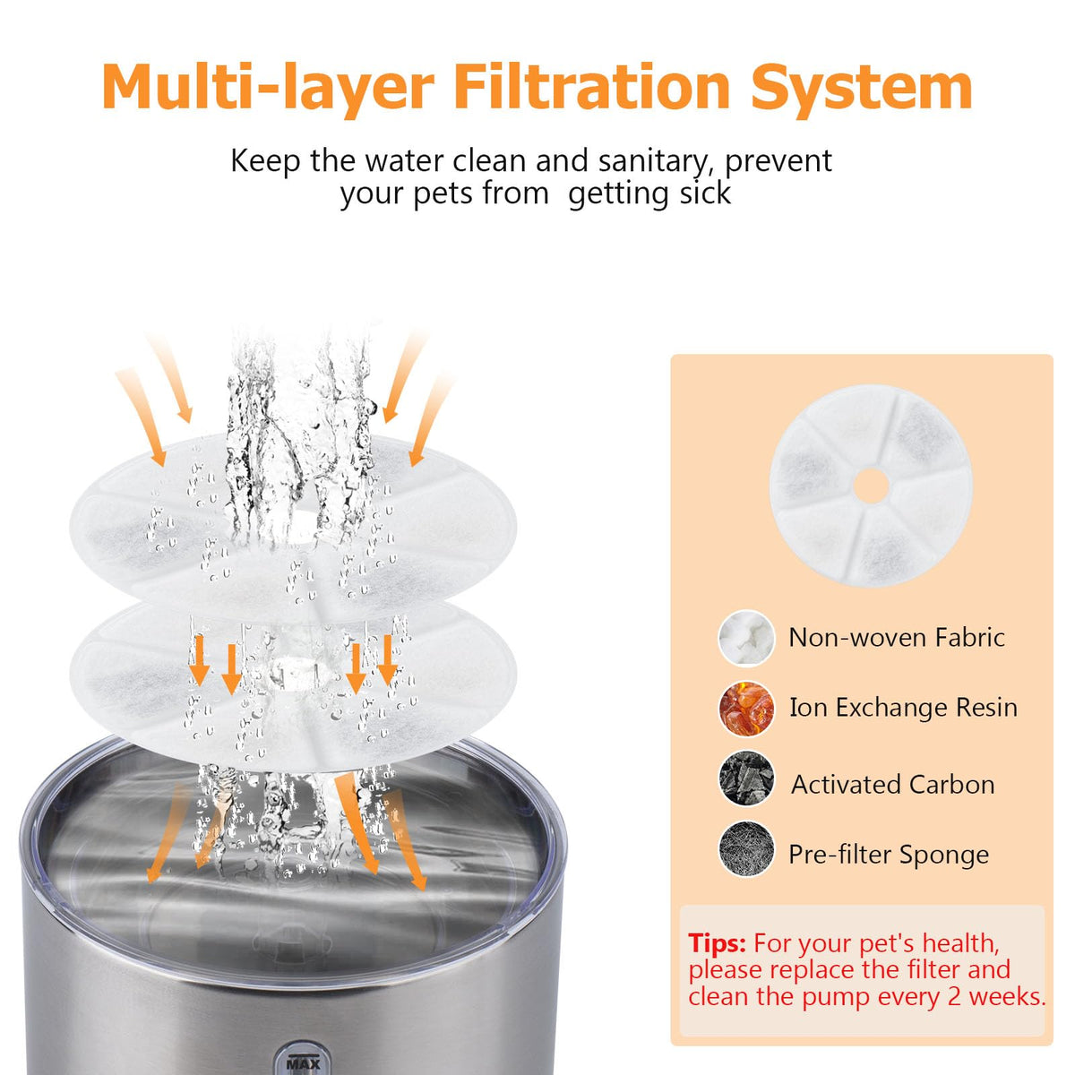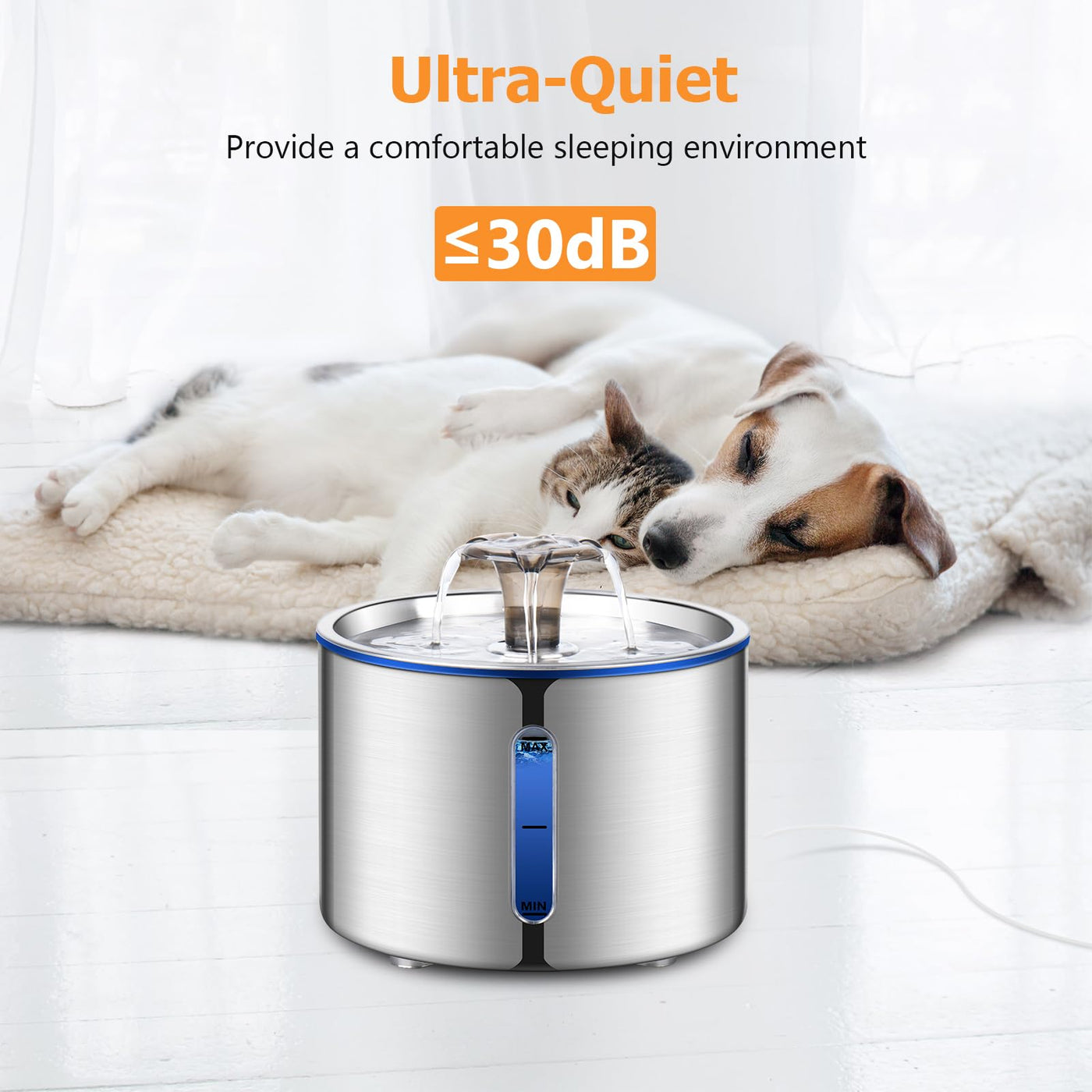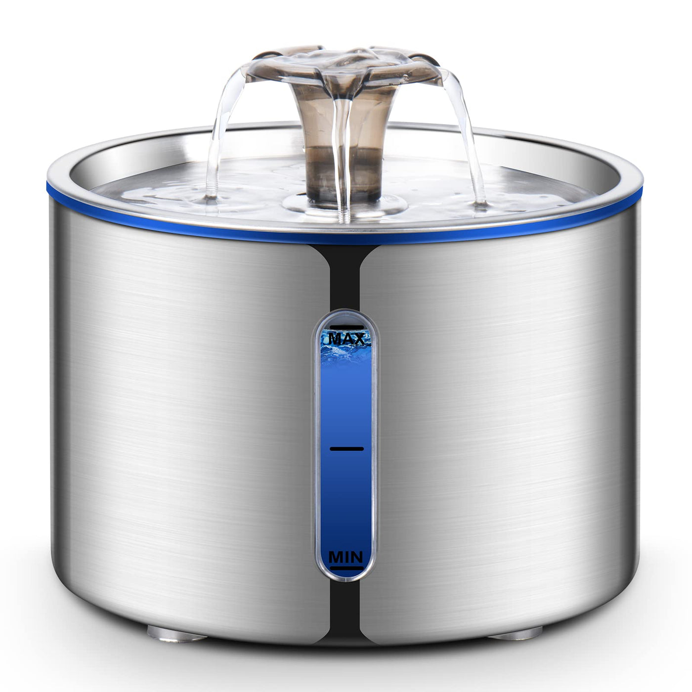 Boorca Cat Water Fountain, 84Oz/2.5L Stainless Steel Pet Water Fountain, Automatic Dog Water Dispenser With Water Level Window,