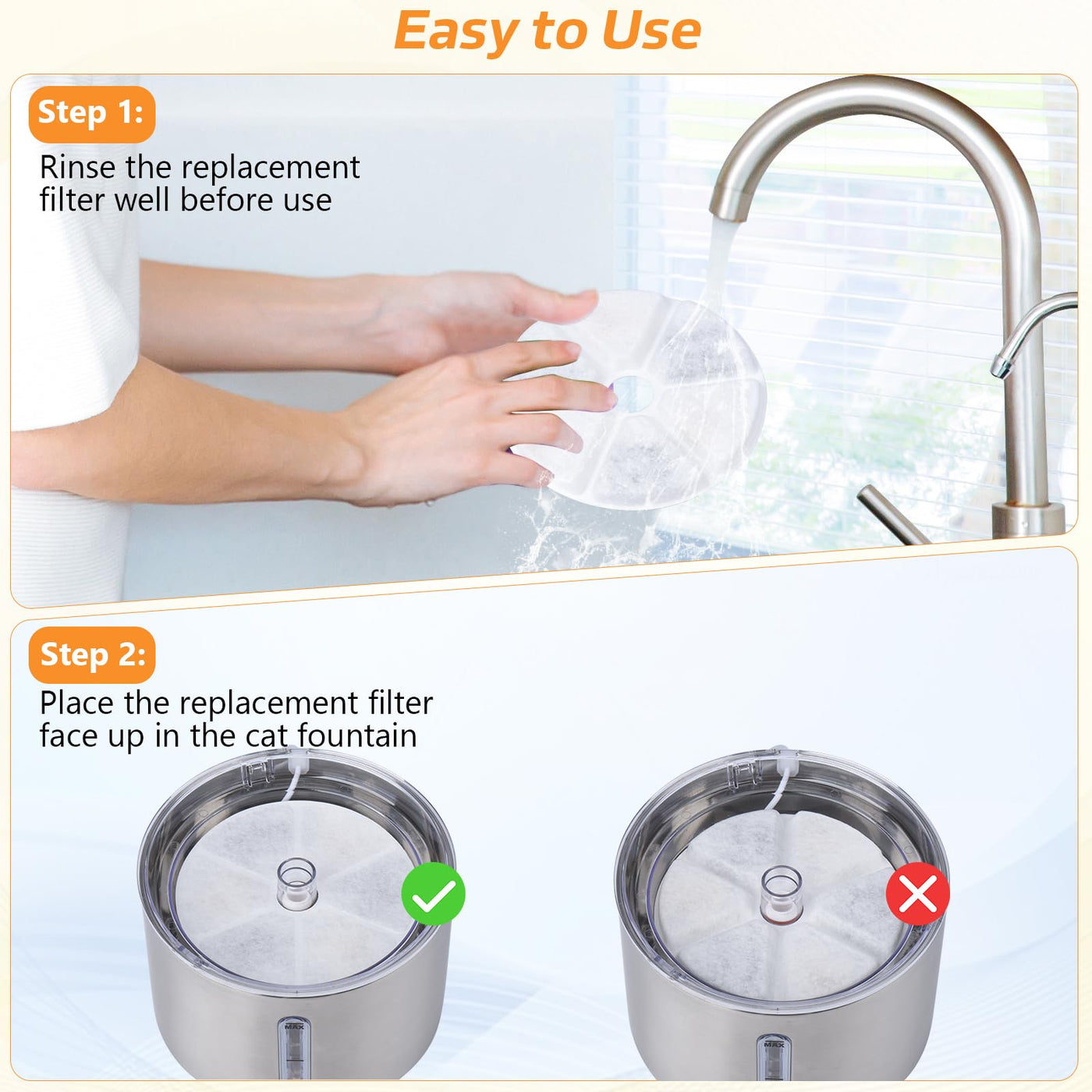 Boorca Cat Water Fountain Filters, 6 Pieces Triple Filtration System Replacement Filter Fit For 84Oz/2.5L Cat Pet Fountain, 6 Fi