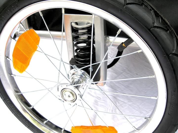 Unlike Other Trailers These Trailers Connect To The Axle And Not The Frame Of The Bike. Connecting To The Frame Can Bend Your Frame And Wear The Paint. Bike Stroller And Bike Trailer. Remove Front Wheel When Used As A Trailer. Bike Arm Swings Out From Underneath. Size: Medium Up To 60 Lbs. Although It May Be Able To Hold The Weight Of Your Pet, It Does Not Mean Your Pet Will Fit Inside The Trailer. Please See That It Can Fit Within The Interior Dimensions. Max Size Of Pet Is About 40Lbs. Interior Dimensions 26L X 18W X 18 H Inches Overall Dimensions 46L X 26W X 37 H Inches Overall Trailer Weight 28Lbs. Add 3Lbs For Stroller Weight (Front Tire And Handle Bar) Front Mesh Window Opens To Allow Pets Head To Stick Out. Inside Leash To Contain Your Pet. Comes With Stroller Accessories (Front 10 Inch Front Swivel Pneumatic Wheel And Adjustable Handlebar) 16 Inch Quick Release Rear Tires. Remove With A Push A Button. Rain/Windcover 3 Layer Sunroof. Closed/Mesh Screen/ Open Adjustable Handlebar Reflectors On Front Back And Tires With Side Reflecting Strips Bike Attachment Arm Swings From Underneath. Bike Hitch Side Storage Pockets Break Removable Inside Cushion Extra Bike Hitch Available For Purchase. Search Booyah Bike Hitch. Option Handlebar Organizer Available. Search Single Booyah Organizer.