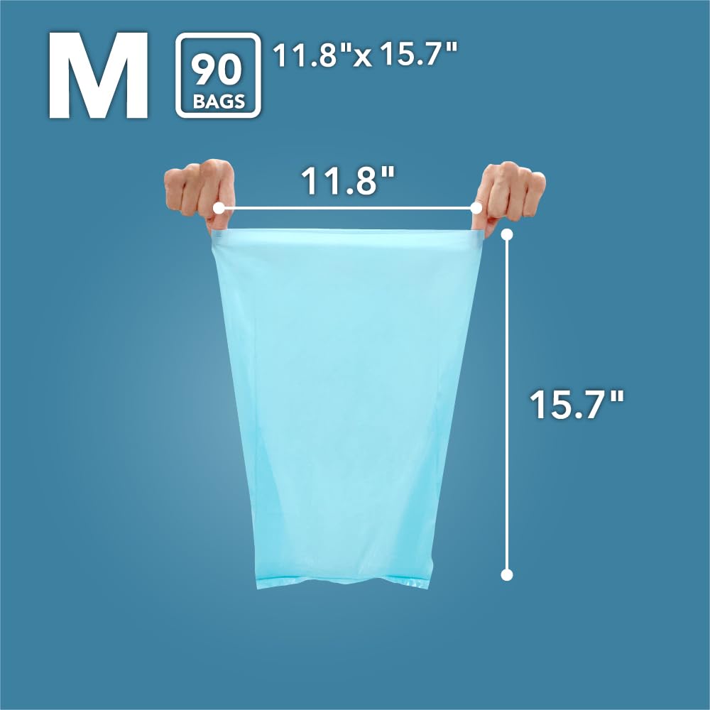 Bos Amazing Odor Sealing Cat Waste Disposal Bags - Durable And Unscented [Size: M, Color: Light Blue] (90 Count, Pack Of 1) (90 Bags)