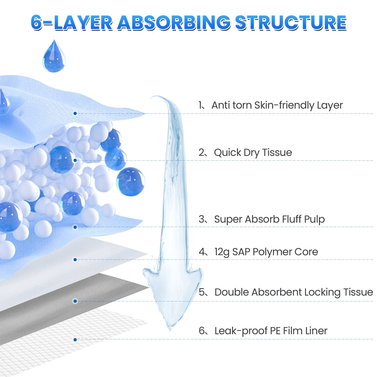 12g Ultra Absorbent core PolymerUpgrade to 12g imported super absorbent polymer and fluff pulp hold more liquid up to 7 cups Boscute puppy pads use more polymer and fluff pulp than others which turn liquid into gel faster protect floors and carpet from urine soaking Thicken Durable 6 Layers ProtectionExtra thickening by 50% dog pads 6 Layers and PE film back to prevent any leaking Even handy for cold wet weather make dog training pads are easy to pick up without leakage or overflow one pee pads last for several days aster Absorption with Diamond Quilting SurfaceOur doggy pads are made of 6 strong layers material to prevent tearing the diamond quilted design with super water locking fast diversion faster infusion and absorption of liquid make dog training pads are easy to pick up without leakage or overflow urable Leak-Proof and Essential for Home with PetsOur pet pee pads with PE film back and border to prevent any leaking even in your absence by blocking leaks for 24 hours Extra 12g Imported polymer material and 60g fluffy pulp and the polymer core turns urine into gel quickly keep pets dry and clean all the day L Larger Size Fit for Most Types of Pets & PuppiesXL Extra large 36*24 suit for large dogs small dogs and puppies cats and other pets use use for pet potty training pet whelping aging pet assist travel carrier puppy tray on car covering waterfood bowl spillage etc