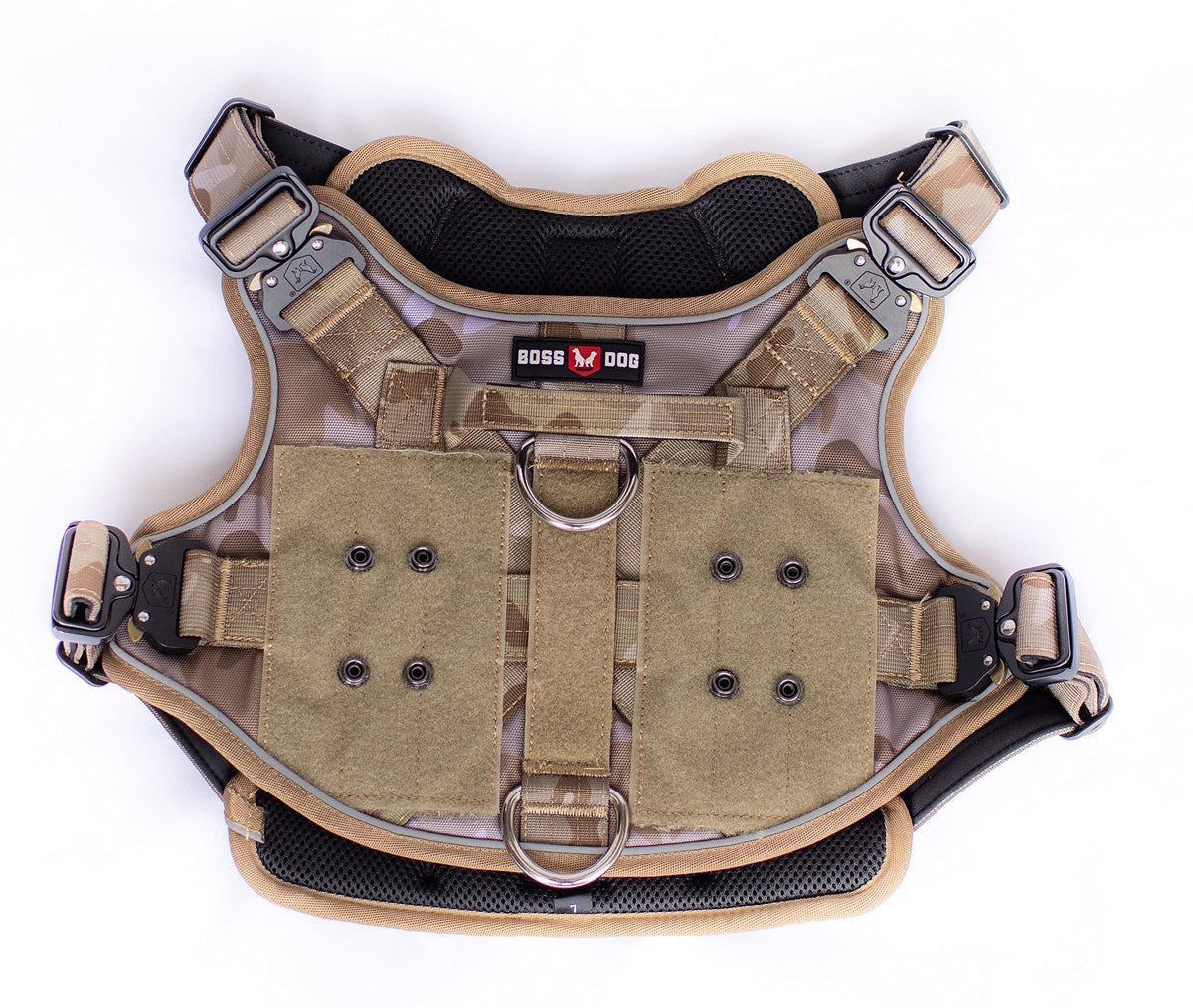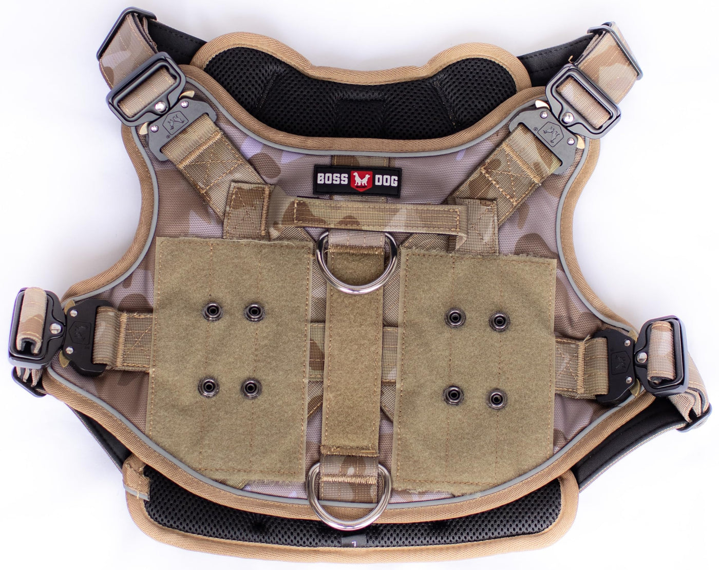 Boss Tactical Harnesses Are Made From Heavy Duty Materials And Constructed To Last. Our Rugged Tactical Look, Combined With Fitted Comfort, Make Boss Tactical Harnesses The Perfect Choice For Your Boss Dog! Made With Multi-Point Reinforced Military Grade Nylon Webbing, Ultra Strong And Anti-Rust Zinc Alloy Dual-Trigger Clips, Stainless Steel D-Rings, Neoprene Lining For Comfort, And Customizable Features To Fit Your Boss Dog! Treat Your Pet, Like A Boss.