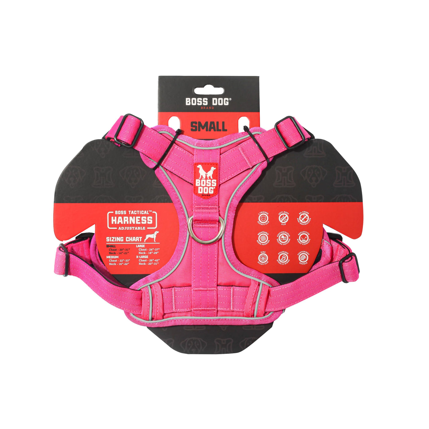 Boss Tactical Harnesses Are Made From Heavy Duty Materials And Constructed To Last. Our Rugged Tactical Look, Combined With Fitted Comfort, Make Boss Tactical Harnesses The Perfect Choice For Your Boss Dog! Made With Multi-Point Reinforced Military Grade Nylon Webbing, Ultra Strong And Anti-Rust Zinc Alloy Dual-Trigger Clips, Stainless Steel D-Rings, Neoprene Lining For Comfort, And Customizable Features To Fit Your Boss Dog! Treat Your Pet, Like A Boss.