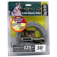 Q: How long is the Boss Pet Products Tie Out Dog XLarge cable?A: The tie-out cable measures 30 feet in length, providing ample space for your dog to roam while remaining securely tethered.