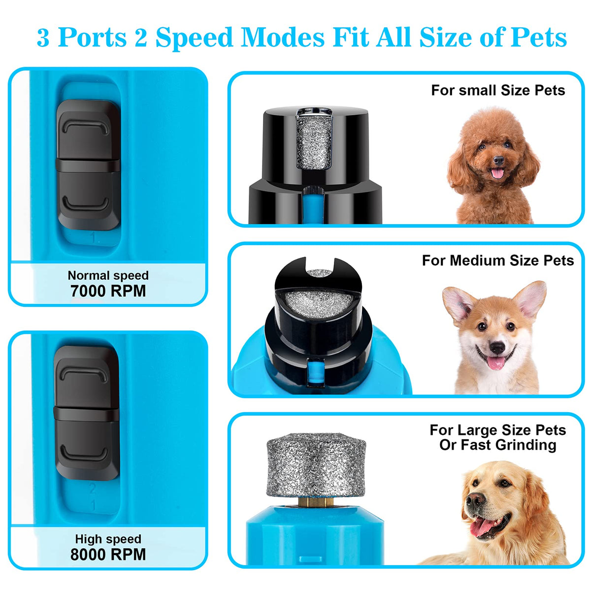 BOUSNIC Dog Nail Grinder with 2 LED Light - Super Quiet Pet Nail Grinder Powerful 2-Speed Electric Dog Nail Trimmer File Toenail