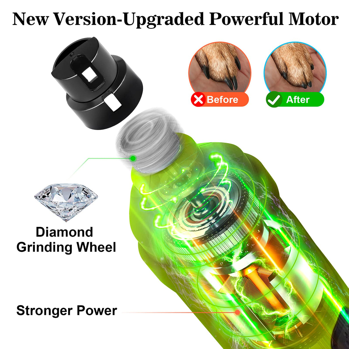 Bousnic Dog Nail Grinder With 2 Led Light - Super Quiet Pet Nail Grinder Powerful 2-Speed Electric Dog Nail Trimmer File Toenail Grinder For Puppy Small Medium Large Breed Dogs & Cats (Green)