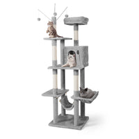 BOWHAUS Tall Cat Tree for Indoor Large Cats or Kittens Multi-Level Cat Activity Tree with Scratching Posts Hammock Cat Cave Condo Modern Cute Small Cat Climbing Tower with Widened Perch