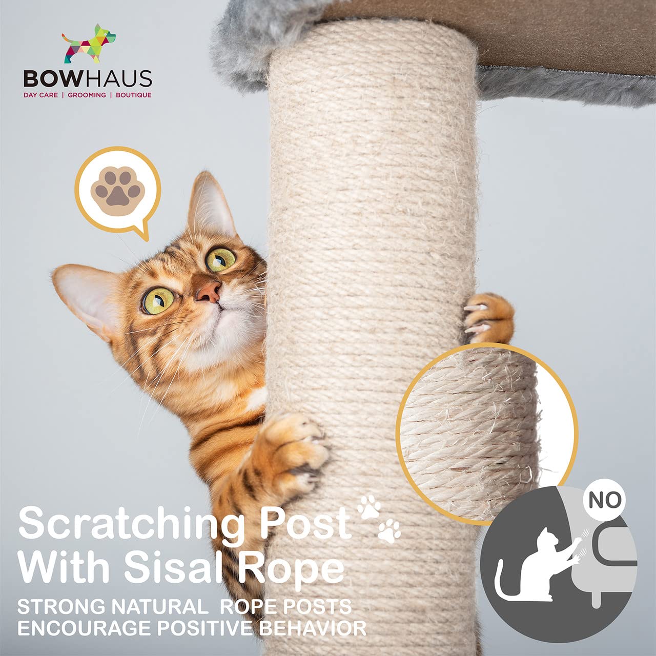 Bowhaus Tall Cat Tree For Indoor Large Cats Or Kittens, Multi-Level Cat Activity Tree With Scratching Posts, Hammock, Cat Cave Condo, Modern Cute Small Cat Climbing Tower With Widened Perch