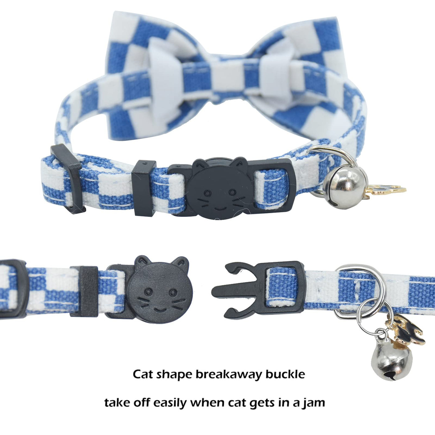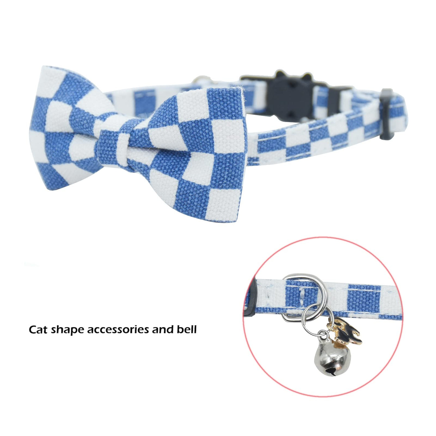Bowtie Cat Collars Breakaway With Bell, Adjustable Cute Kitty Collars Safety Buckle Kitten Collar For Cat Puppy 7.5-11In (Blue P
