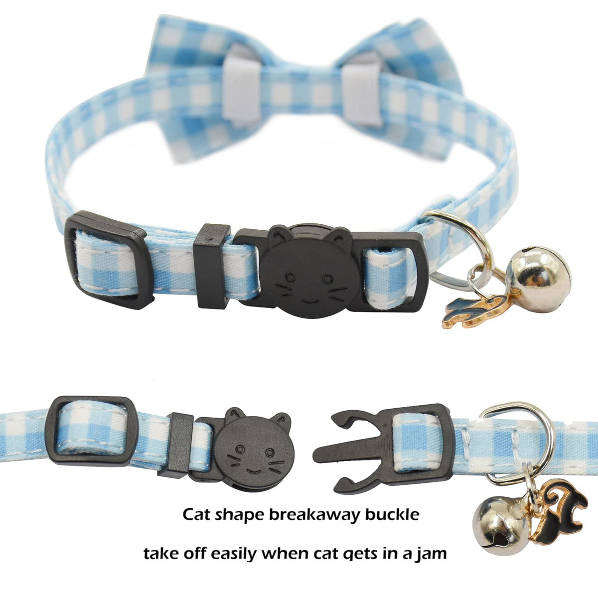 Bowtie Cat Collars Breakaway With Bell, Adjustable Cute Kitty Collars Safety Buckle Kitten Collar For Cat Puppy 7.5-11In (Light