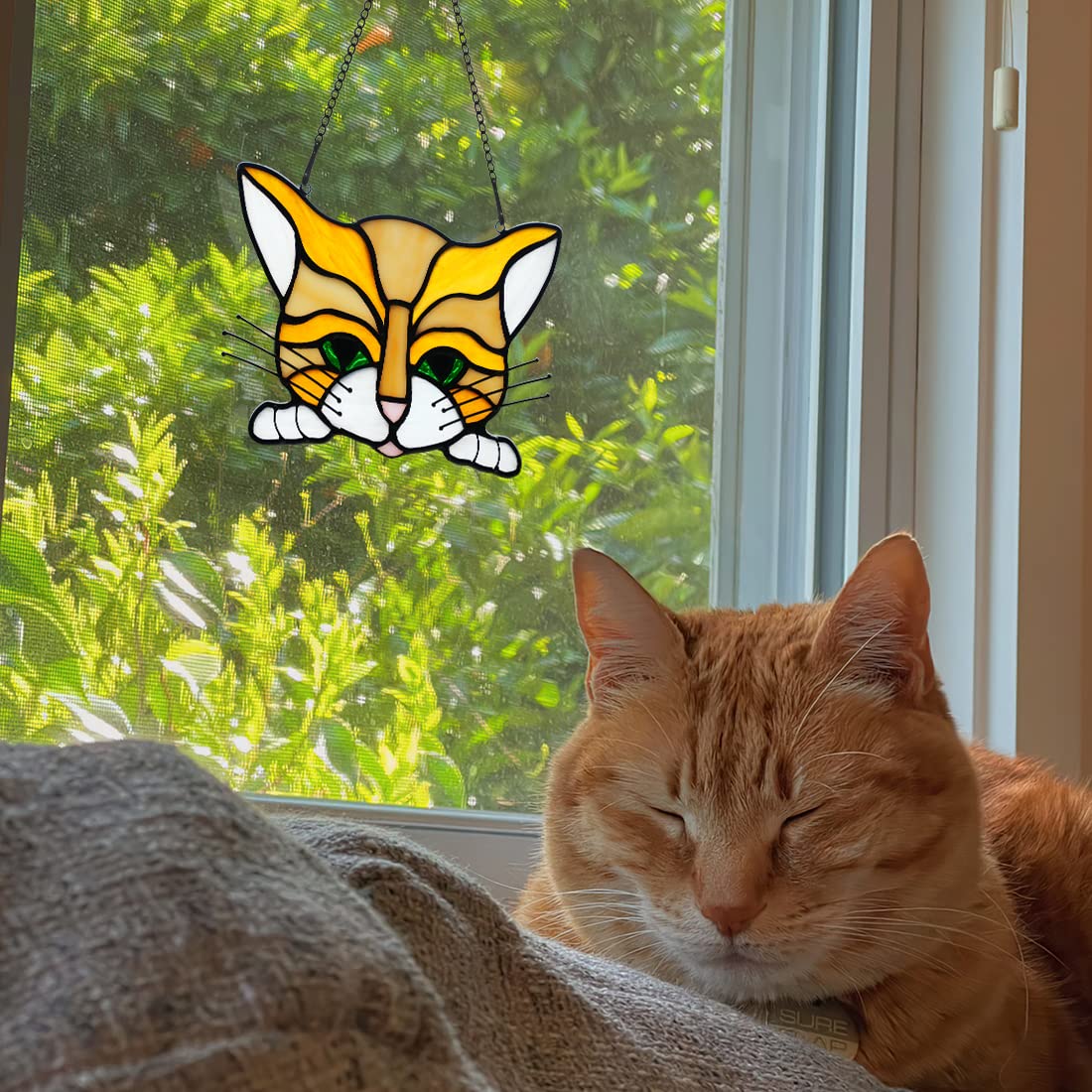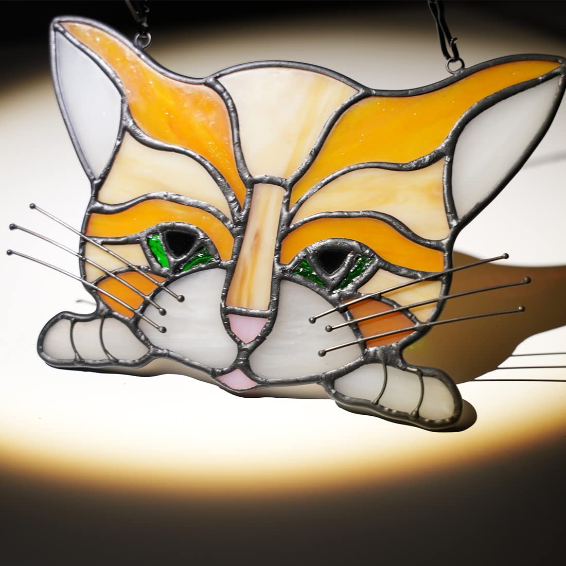 Cat Stained Glass Window Hanging Can Be Cat Memorial Gifts For Cat Lovers, Pet Lovers,Loss Of Cat Sympathy Gifts For Women,Loss Of Cat Sympathy Gift For Cat Lovers, Also Can Be A Mother'S Day Gift, Birthday Gift, Christmas Decor Gift, Teacher'S Day Gift, Valentine'S Day Gift And Housewarming Gift. Specification: Subject: Pet Cat Memorial Gift Material: Stained Glass;Copper Foil Style: Orange Cat Color: Orange Dimensions: Quality Assurance: We Focus On The Best Products And Services, If There Is Any Quality Problem During Shipping, Please Contact Us Directly For Return Or Refund. Note: The Product Glass May Have Small Bubbles Due To The Process.
