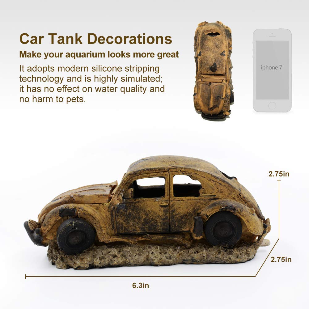 Boxtech Decorations For Aquarium, Aquarium Resin Ornament Decorations, Imitation Car Wreck For Air Bubble Stone Oxygen Pump Fish