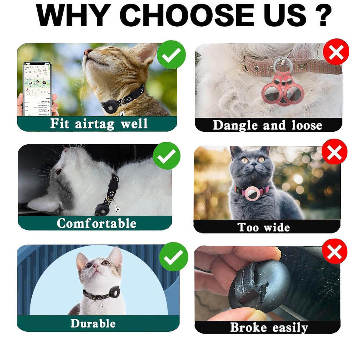 ?Track Cats Easily And Designed For Airtag?Our Cute Cat Collar Comes With An Elastic Airtag Case, Which Can Well Protect Your Airtag Device And It Is Exactly What You Need, It Allows You Easily To Find The Location Of Your Pet. ?Safe Breakaway Buckle Design?Breakaway Safety Buckle, Prevent Suffocation: The Buckle Is Designed With Round Lugs To Avoid Scratches. If Your Cat Is Trapped, The Safety Buckle Will Be Released When It Break Free, Preventing The Cat From Suffocation In Extreme Situations And Keeping The Cat Safe. ?Comfortable And Fur Friendly Material? The Cute Cat Collar Is Made Of High Quality Nylon And Cotton Material. Light Weight, Soft And Breathable, Won'T Irritate The Cat'S Skin, Comfortable To Wear, Strong And Durable. ?Waterproof And Easy To Clean? Our Airtag Case Is Made Of Waterproof Silicone Material Protects The Airtag Better And It Also Wipes Off Dirt And Grime Easily. ?Satisfaction? In Case You Are Not Satisfied With The Cat Collar Received, Don'T Hesitate To Contact Our Online Support Team.