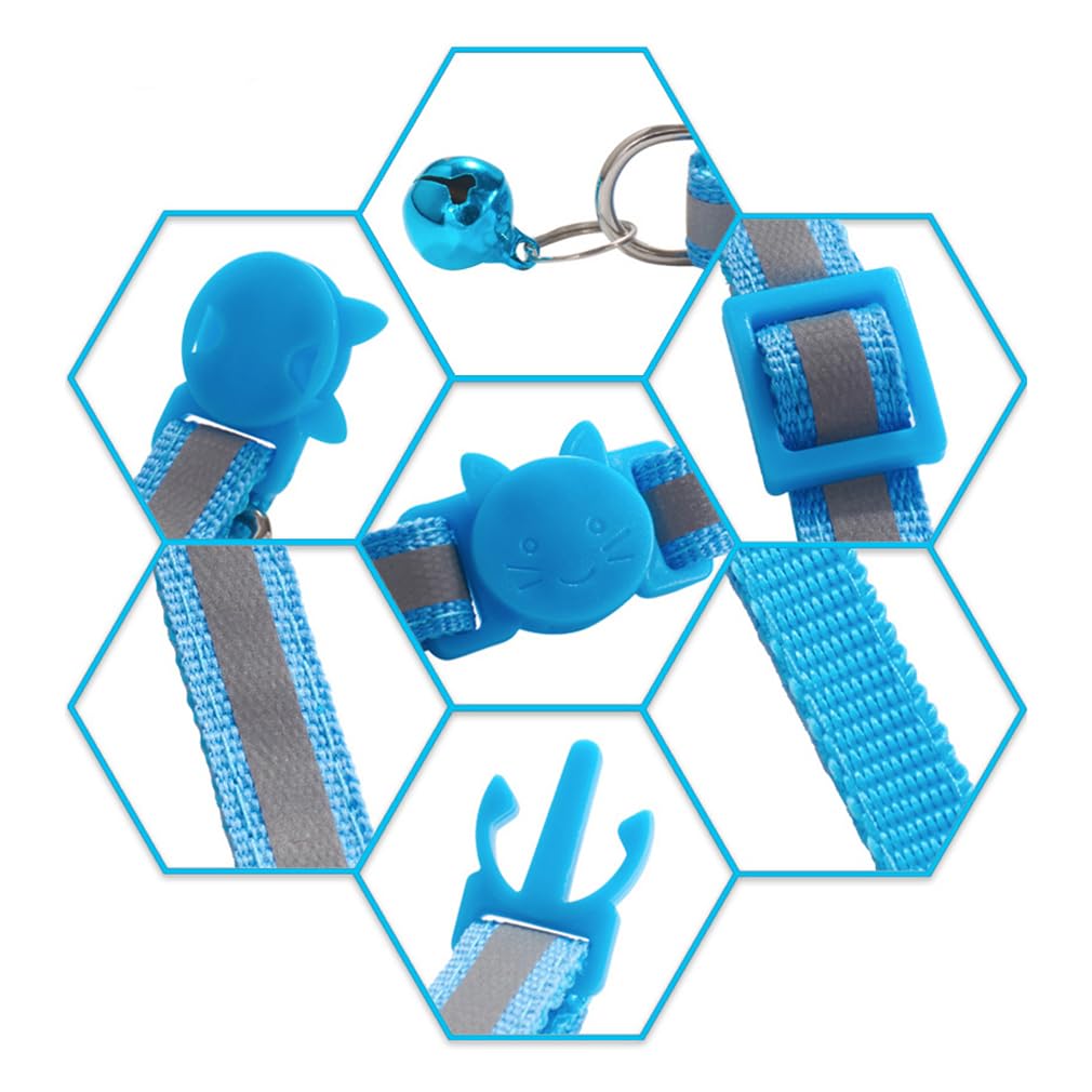 One Size Adjustable-- Reflective Kitten Collars Are Adjustable For Neck 7-12 Inch, Width 2/5 Inch. Please Measure Your Cat' S Neck Girth Before Purchasing. To Ensure The Most Comfortable Fit For The Collar Size. Breakaway Buckle & Safety--The Reflective Cat Collar'S Buckle Is Designed With Cat Head, Will Not Irritate Your Cat And It'S Only When Pressure Is Applied, The Safety Buckle Will Be Released Quickly To Prevent Accidental Opening,The Breakaway Buckle Is Very Safe For Pets, And Convenient For You To Open It. High Reflective--The Breakaway Cat Collar Is Foot Prints And Stripes Are Sprayed With High-Reflective Materials, Whether You Use The Light Source Of A Mobile Phone Or A Flashlight, You Can Easily Find The Cat In The Dark.Bell Accessories-- The Cat Collar With Bells Can Let You Know The Position Of The Cat At Any Time, But Metal Substances May Affect The Normal Operation Of The Washing Machine. It Is Recommended To Wash It By Hand With Clean Water And Mild Soap. After Washing Please Air Dry. Matching Color 2-Pack--2 Matching Color Combinations, Easy To Daily Replacement. Package Include 2-Pack Reflective Cat Collars With Bells, 1 X Strip Kitten Collar & 1 X Foot Print Cat Collar.