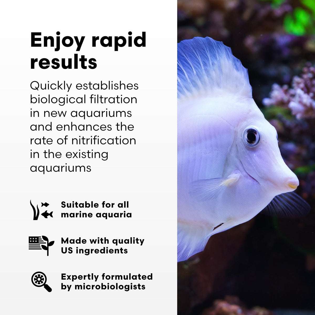 Brightwell Aquatics MicroBacter Start XLM Experience a new level of aquarium care with Brightwell Aquatics MicroBacter Start XLM - the ultimate solution for achieving a balanced and thriving aquatic environment. Our concentrated formula is designed to establish a new nitrogen cycle or boost an impaired one, ensuring the rapid establishment of biological filtration and creating a stable habitat for your aquatic companions. Its particularly useful for new startups, resulting in tank cycling in 7 days in most cases. Also useful in emergencies or after medications to re-establish damaged bacteria beds. This advanced blend works effectively to break down nitrogenous waste, keeping your aquarium water pristine. It is meticulously formulated to enhance water quality and eliminate ammonia and nitrite spikes. Whether youre setting up a new tank or maintaining an established one, MicroBacter Start XLM is your go-to solution. Its versatility extends to marine and brackish aquariums, providing powerful support for a diverse range of aquatic environments. FEATURES AT A GLANCE Super concentrated 15x strength formula Useful for rapidly re-establishing nitrification bacteria in case of an emergency Usually cycles in 7 days Ideal in aquaria with high population densities and when adding new fish Best used post-cleaning of rocks and surfaces or after use of medication Prevents New Tank Syndrome Supplied in a proprietary base for maximum longevity Formulated utilizing extensive data compiled by microbiologists AMERICAN-MADE EXCELLENCE Trust in the quality and excellence of Brightwell Aquatics, an industry-leading brand committed to providing innovative and scientifically backed aquatic care products. Made in the USA, we consistently strive to deliver advanced superior quality solutions to elevate the vibrancy and health of your aquarium.
