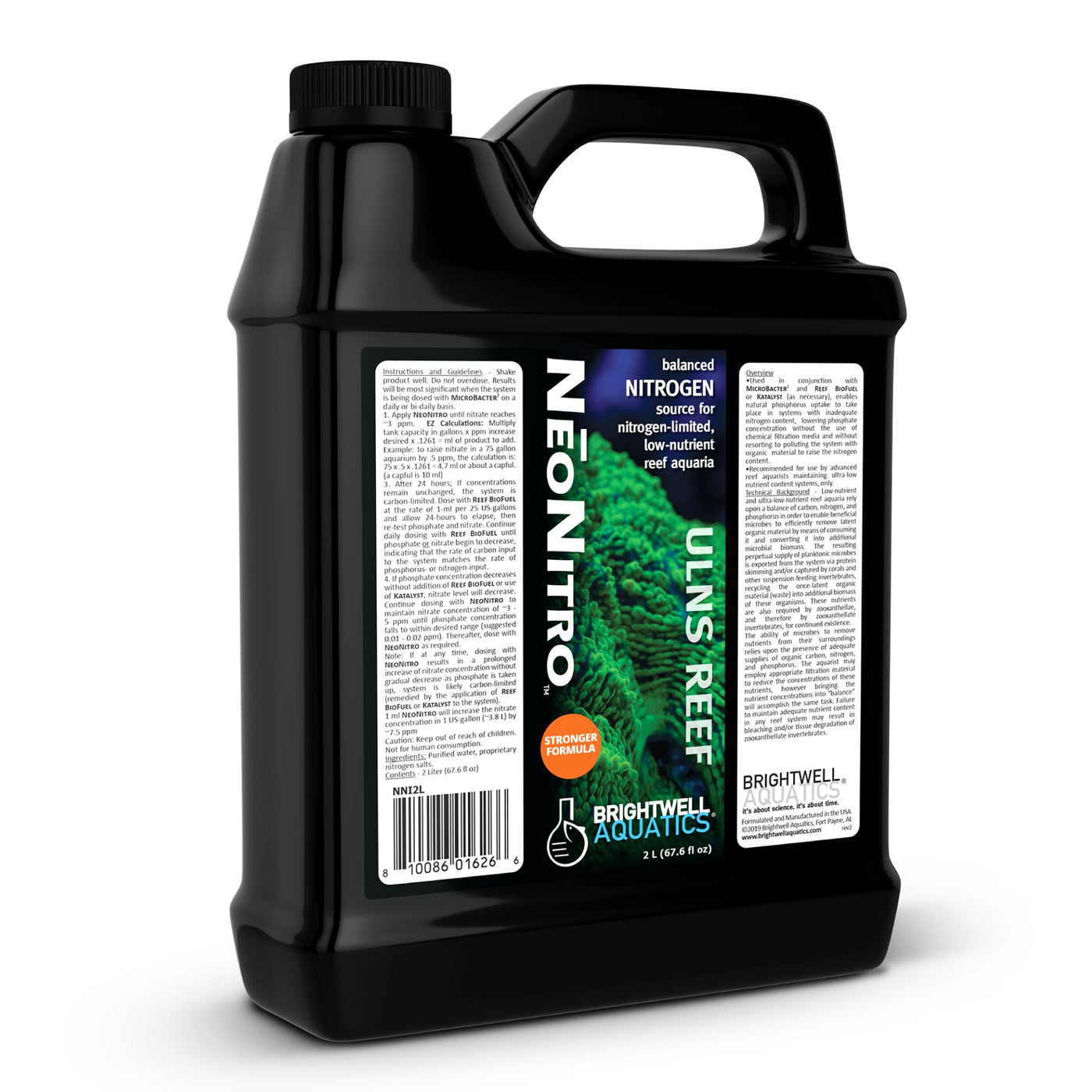 Brightwell Aquatics NeoNitro Nitrogen Supplement Elevate your reef aquarium with NeoNitro, the advanced solution for achieving and maintaining optimal nutrient content. Specifically designed for advanced reef aquarists, NeoNitro enables natural phosphorus uptake without resorting to chemical filtration, ensuring a cleaner environment without the need for organic material pollution. Additionally, its use promotes optimal water quality for thriving coral ecosystems. In ultra-low nutrient content systems, NeoNitro proves an essential nutrient, contributing to improved health and vibrant coloration of your aquarium inhabitants. Achieve a perfect balance of carbon, nitrogen, and phosphorus with the synergistic use of MicroBacter7, Reef Biofuel, Katalyst, and NeoPhos, creating an ideal ecosystem for your reef. NeoNitro enhances microbial biomass, fostering the efficient removal of latent organic material. This results in a perpetual supply of planktonic microbes, either exported via protein skimming or captured by corals and other suspension-feeding invertebrates, recycling latent organic material into additional biomass. The flexibility of NeoNitro extends to nutrient management, allowing aquarists to tailor levels with Reef Biofuel and NeoNitro, ensuring the optimal balance of carbon, nitrogen, and phosphorus. Follow our easy-to-use instructions for significant results, especially when dosing with MicroBacter7 on a daily or bi-daily basis. FEATURES AT A GLANCE Enables natural phosphorus uptake in systems with inadequate nitrogen content Lowers phosphate concentration without the use of chemical filtration media or pollution Used with MicroBacter7, Reef Biofuel and/or Katalyst, and NeoPhos AMERICAN-MADE EXCELLENCE Trust in the quality and excellence of Brightwell Aquatics, an industry-leading brand committed to providing innovative and scientifically backed aquatic care products. Made in the USA, we consistently strive to deliver advanced superior quality solutions to elevate the vibrancy and health of your aquarium.