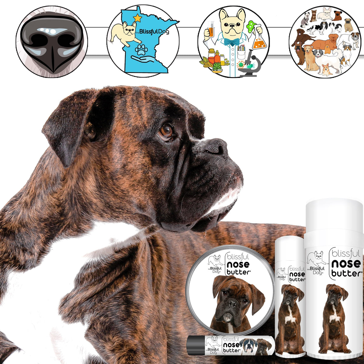 Many dogs have a tendency toward a dry, crusty nose condition, frequently called nasal hyperkeratosis. While any dog can have this condition, some breeds have even more of a predisposition toward dry noses; French Bulldogs, Boxers, Pugs, Bulldogs, most Bully types, Mastiff breeds and their mixes. Nose Butter was developed specifically for this condition. Nose Butter moisturizes rough, dry crusty dog noses. All natural, rich moisturizers soften and smooth your dogs dry, crusty, cracked nose and works like a healing balm. Nose Butter is individually handcrafted in far northern Minnesota (yes, it is science fiction cold in the winter) using all natural and organic good stuff: shea butter, olive oil, castor oil, avocado oil, almond oil, coconut oil, beeswax and cocoa seed butter. Available in Unscented and Lightly Scented with Cedarwood, Cypress and Ylang Ylang. NOSE BUTTER USAGE: DAB a bit onto your dogs nose 1-3x a day for 2-3 days (until nose improves) and then as needed for maintenance (usually1-2x a week). DISTRACT with a treat (keeps them from licking NOSE BUTTER off while it moisturizes). DONE! Complete directions, tips, hints and dog nose info is available on product details pages.