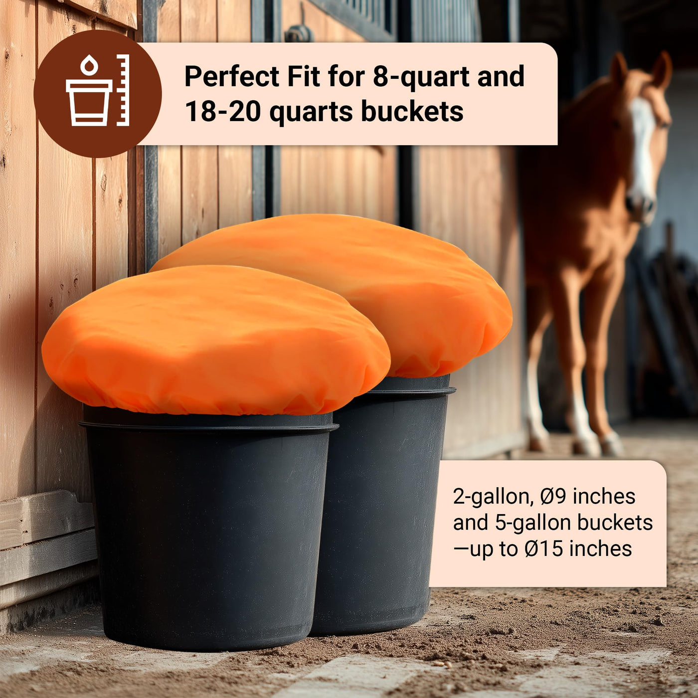 BRINGERPET Horse Bucket Cover, Waterproof Feed Bucket Top 2-5 Gallon (Orange) - 1 pc