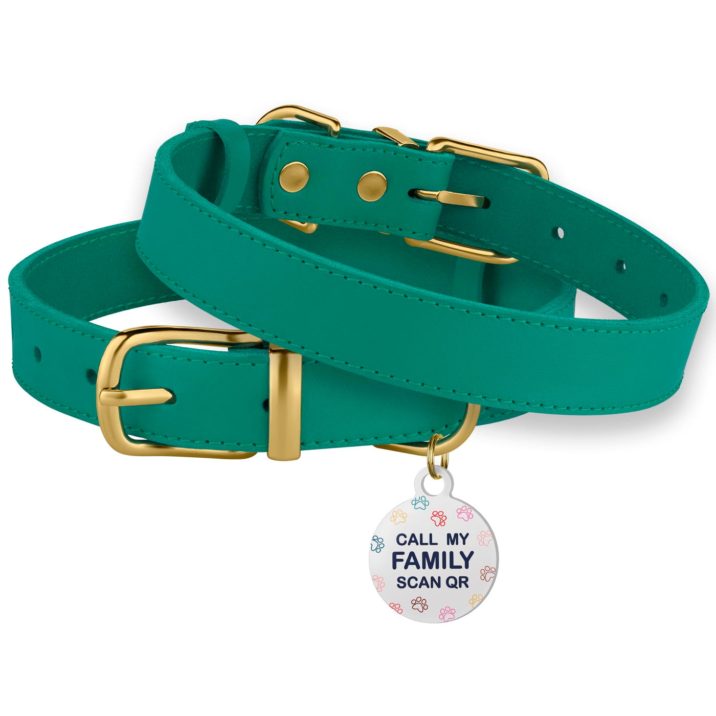 Bronzedog Leather Dog Collar With Qr Id Tag Basic Pet Collars For Small Mini Dogs Cats Puppies (9-11 Inch (Pack Of 1), Green & G