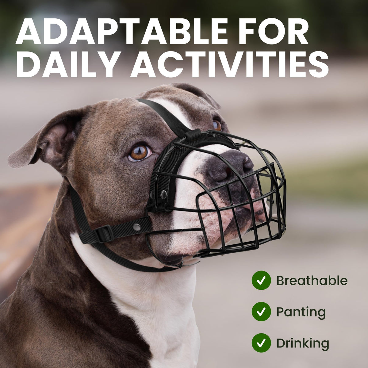 Pitbull Dog Muzzle Fits Best For Snout Girth: 13 Inches, Snout Length: 3 1/2 Inches. Selecting The Right Size And Fit Ensures The Muzzle Is Comfortable And Effective. Metal Dog Muzzle For Pitbull Is Made Of Durable Light-Weight Steel And Has Additional Neoprene Soft Padding Over Nose. 4 Adjustable Leather Straps Secure The Muzzle In Place Over The Dogs Head. Steel Dog Muzzle Is Perfect For Walking, Training, Vet, Grooming And Etc. Dog-Friendly Durable Basket Shape Allows Panting Water, Accepting Small Treats.Metal Basket Dog Muzzle For Pit Bull With Adjustable Leather Straps Is Designed To Fit Securely Over The Dog'S Snout, To Prevent The Dog From Biting Or Eating Things They Shouldn'T While Still Allowing Them To Breathe And Drink Comfortably. Safe Shape Basket Dog Muzzle Allows Unrestricted Nose Licking. Dog Muzzle For Large Dogs Has Excellent Ventilation, No Breathing Discomfort In The Heat. Unlike Nylon Printed Muzzles This Construction Is More Secure And Long Living. It'S Important To Note That A Muzzle Should Never Be Used As A Punishment For A Dog'S Behavior. Instead, It Should Be Used As A Temporary Measure For Safety Reasons. Please Use The Muzzle Responsibly And Train The Dog To Wear It Properly. Mind That Before You Put The Muzzle Your Dog Must Be Ready For This. Train A Dog To Accept A Muzzle. It'S Important To Introduce The Muzzle Gradually And Positively To Your Dog, So They Associate It With Positive Experiences The Dog Who Never Trained For Muzzle Will Definitely Try To Pull It Off Immediately. And Obviously After Several Attempts Dog Can Escape From Any Type Of Muzzle.